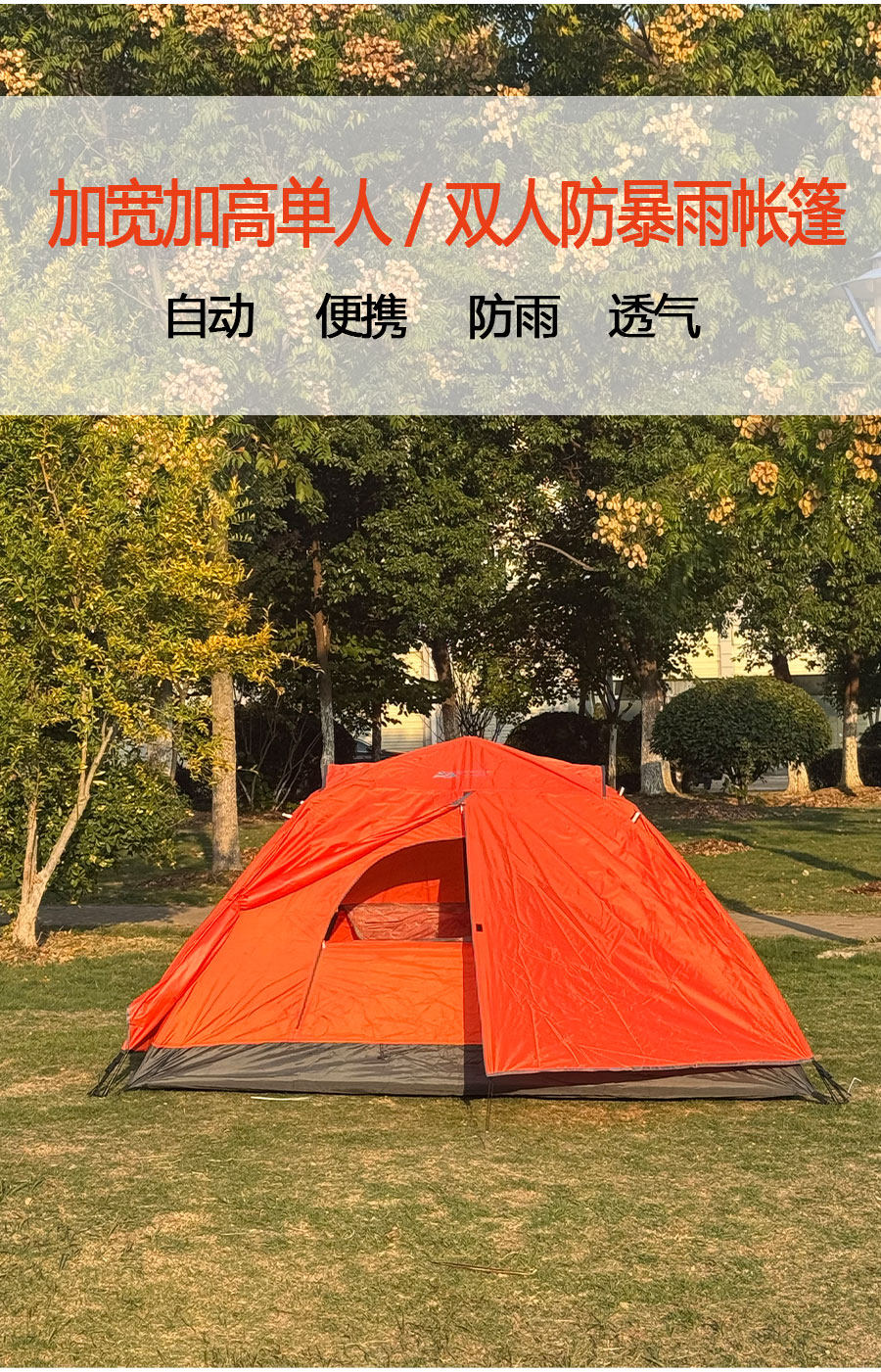 戶外帳篷自動雙層單人加寬加高露營防暴雨輕量化一鍵速開全套可攜式