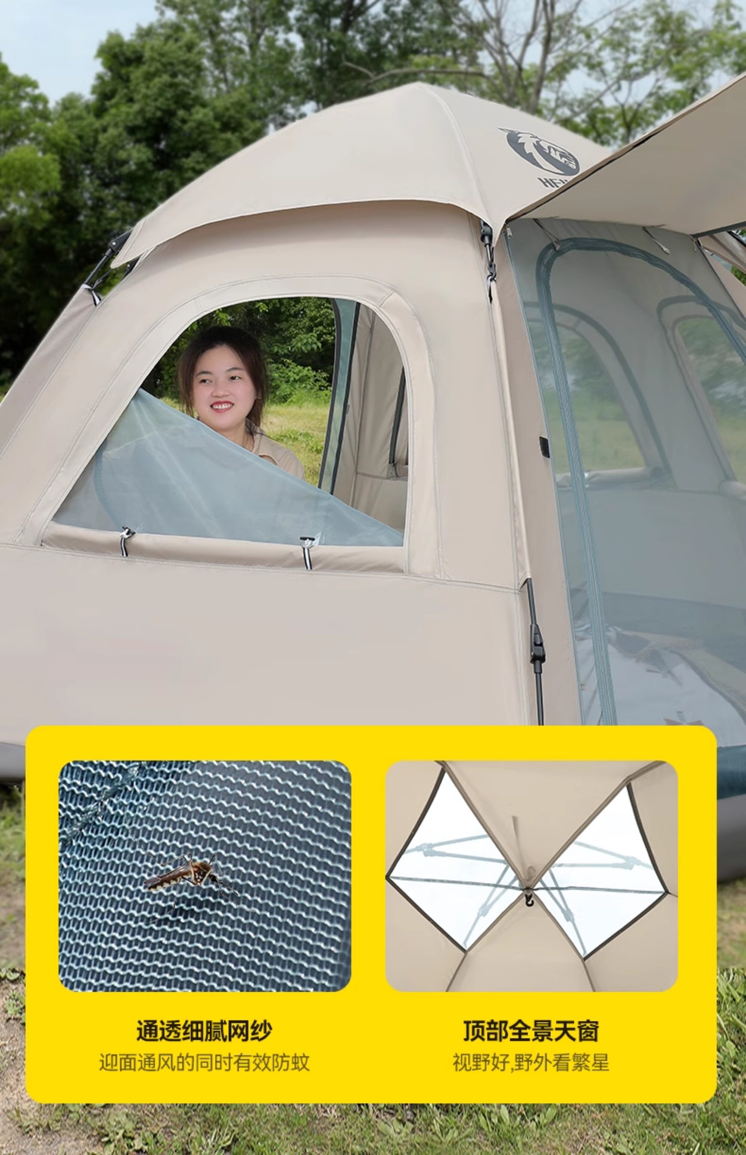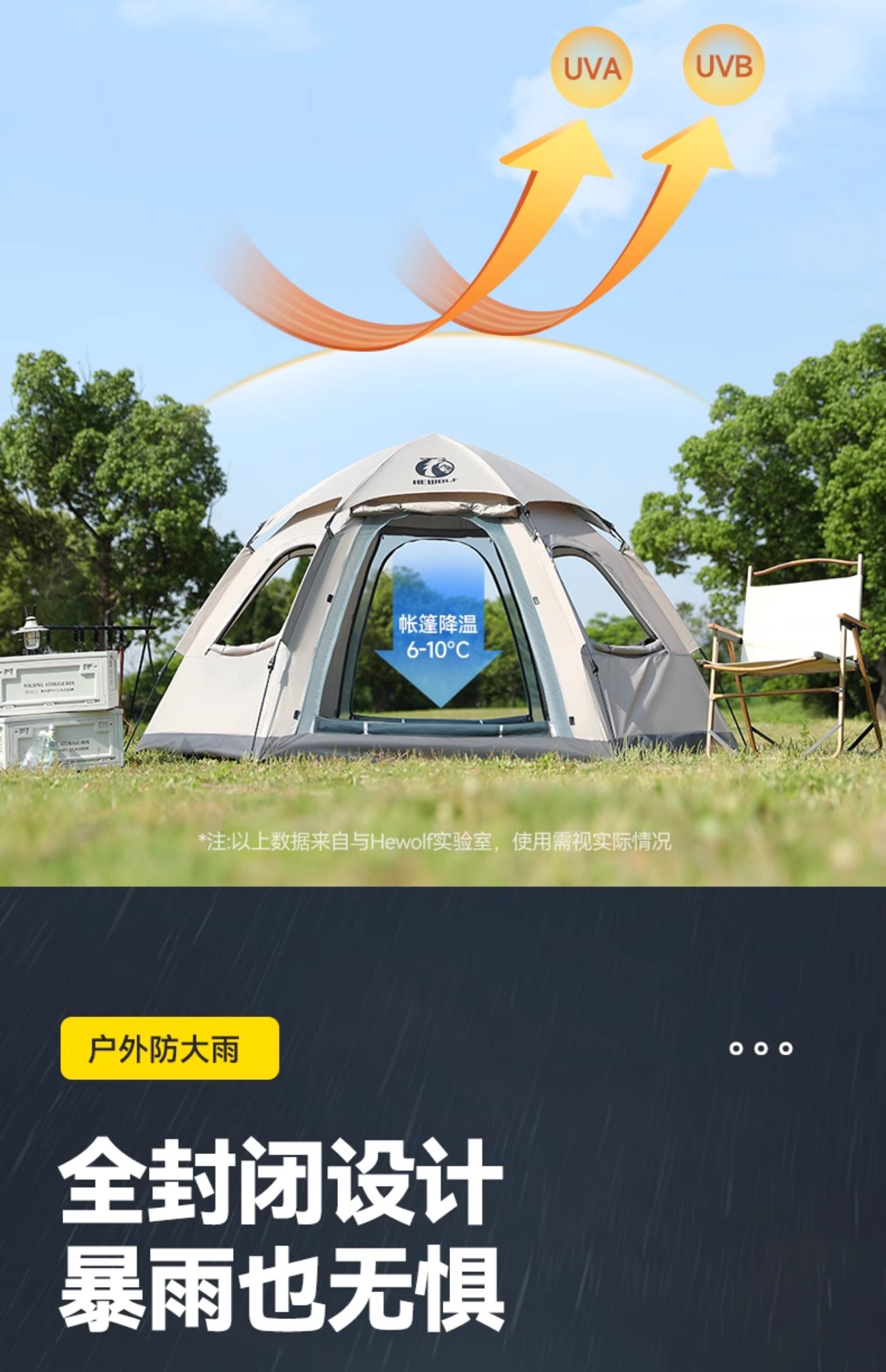 HEWOLF公狼帳篷專業戶外露營折疊可攜式野營自動速開雙層防雨防曬
