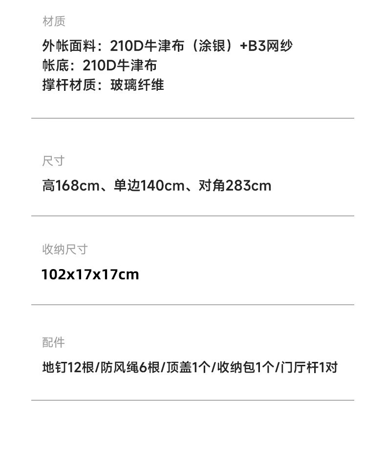 | 帳底材質 | 210D牛津布 |