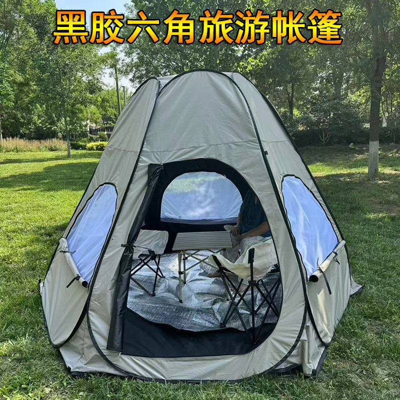 黑膠六角帳篷防曬防蟲遮陽沙灘野外露營速開折疊可攜式公園野餐帳篷