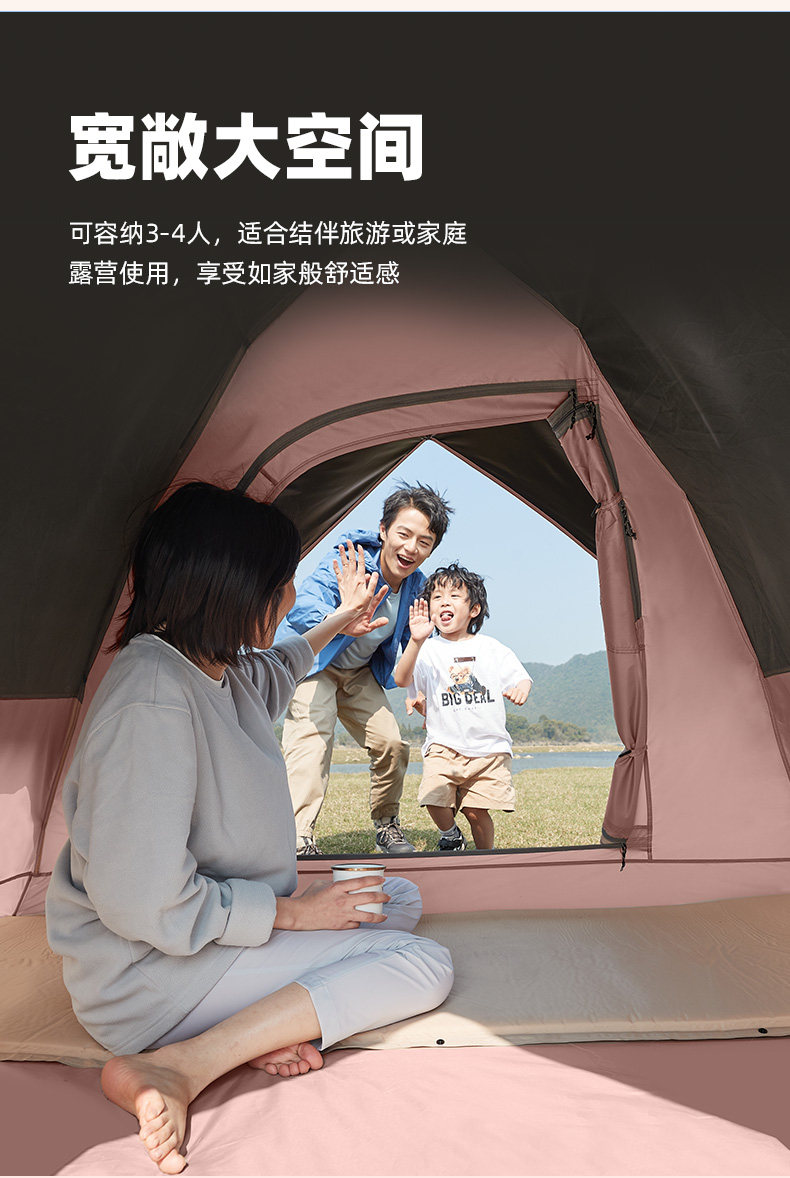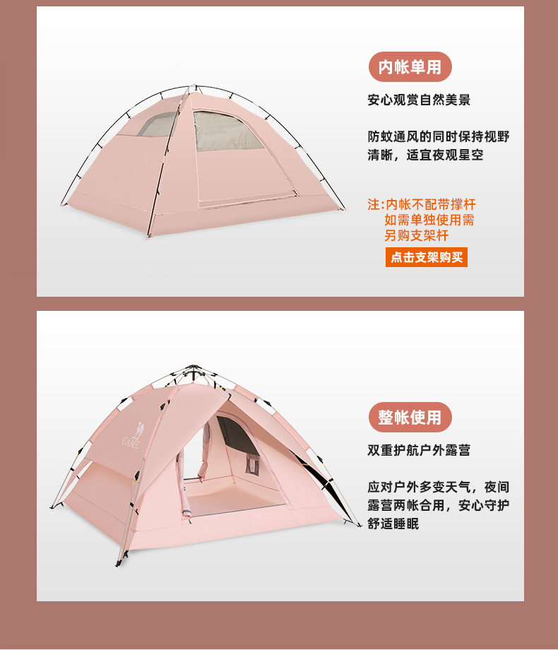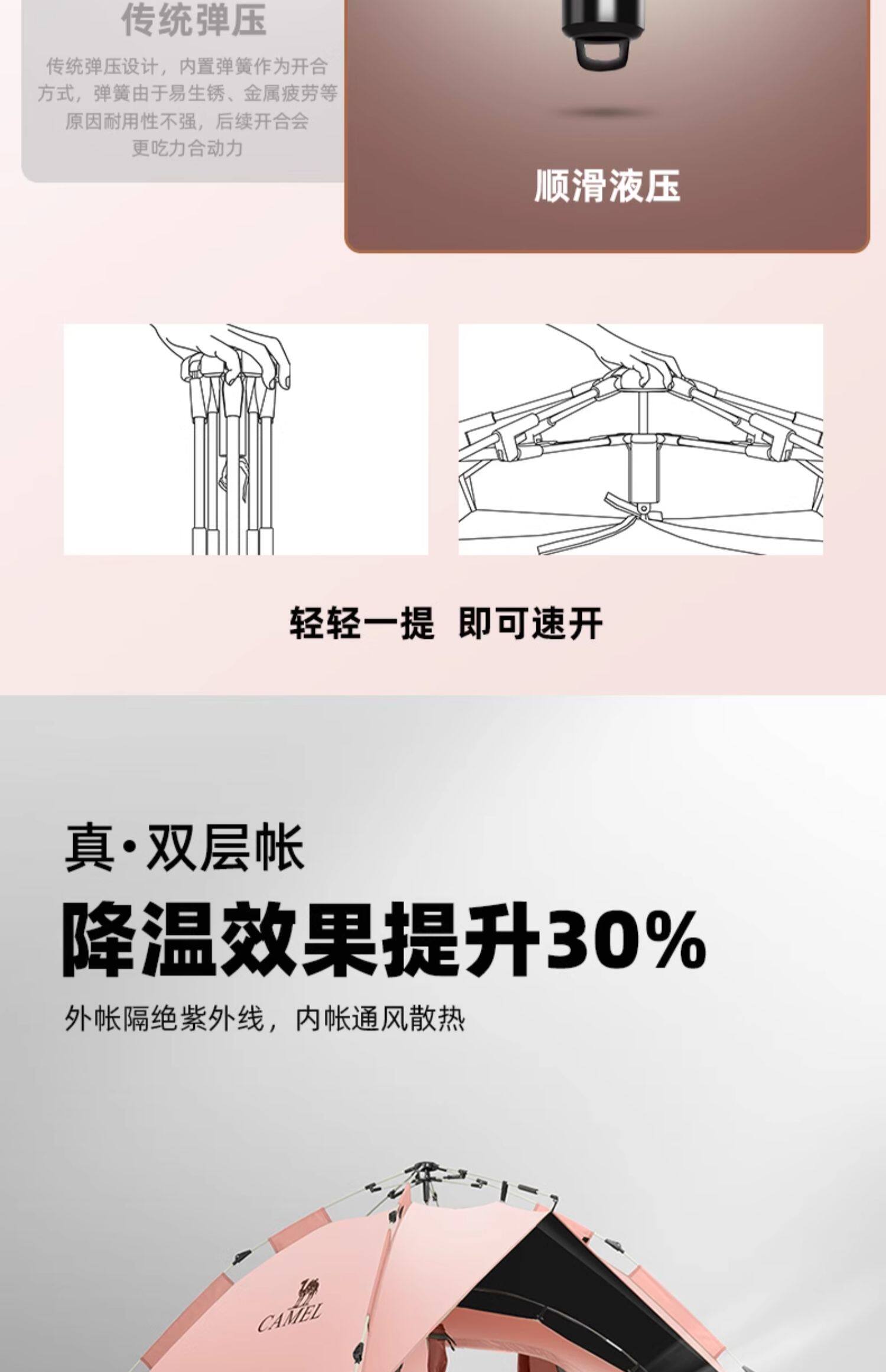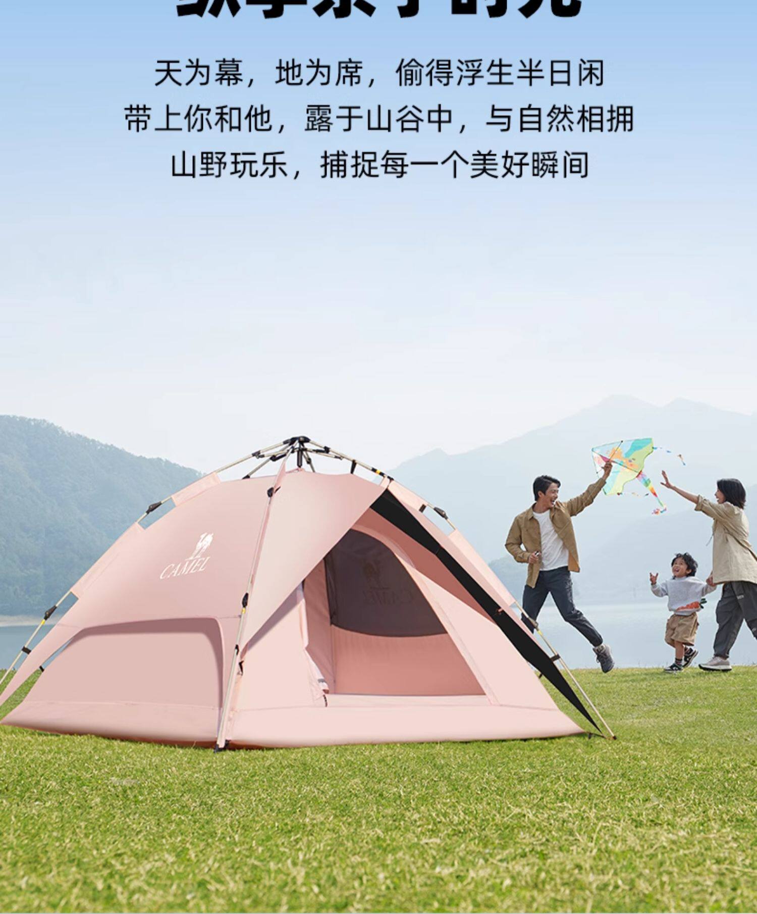 駱駝粉色戶外折疊帳篷加厚全自動速開可攜式兒童野餐防雨露營裝備
