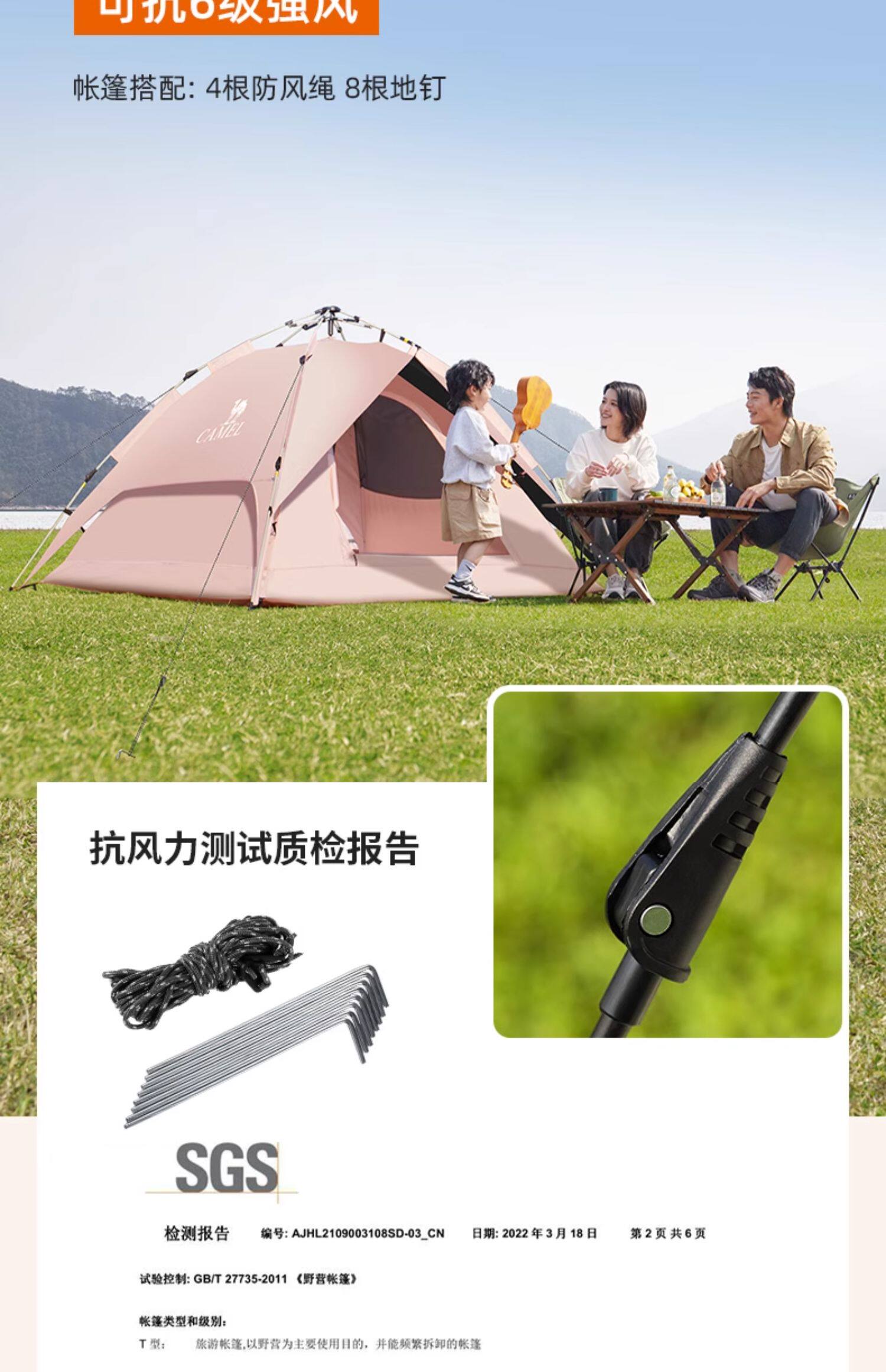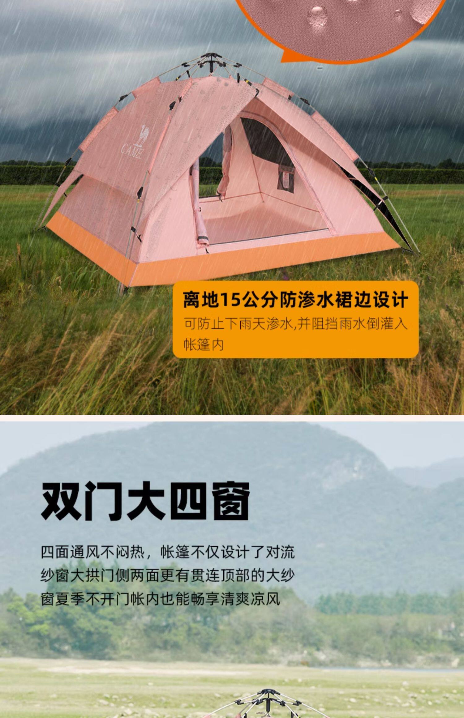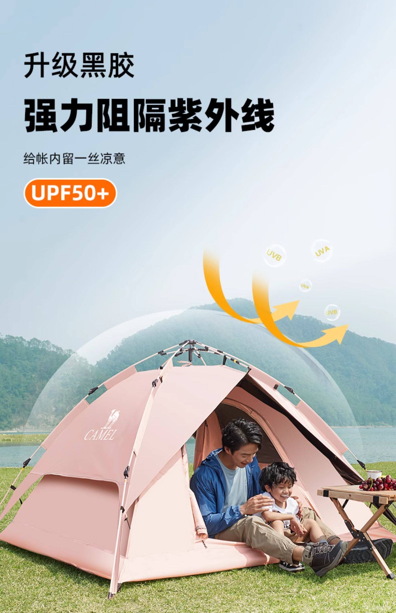 駱駝粉色戶外折疊帳篷加厚全自動速開可攜式兒童野餐防雨露營裝備
