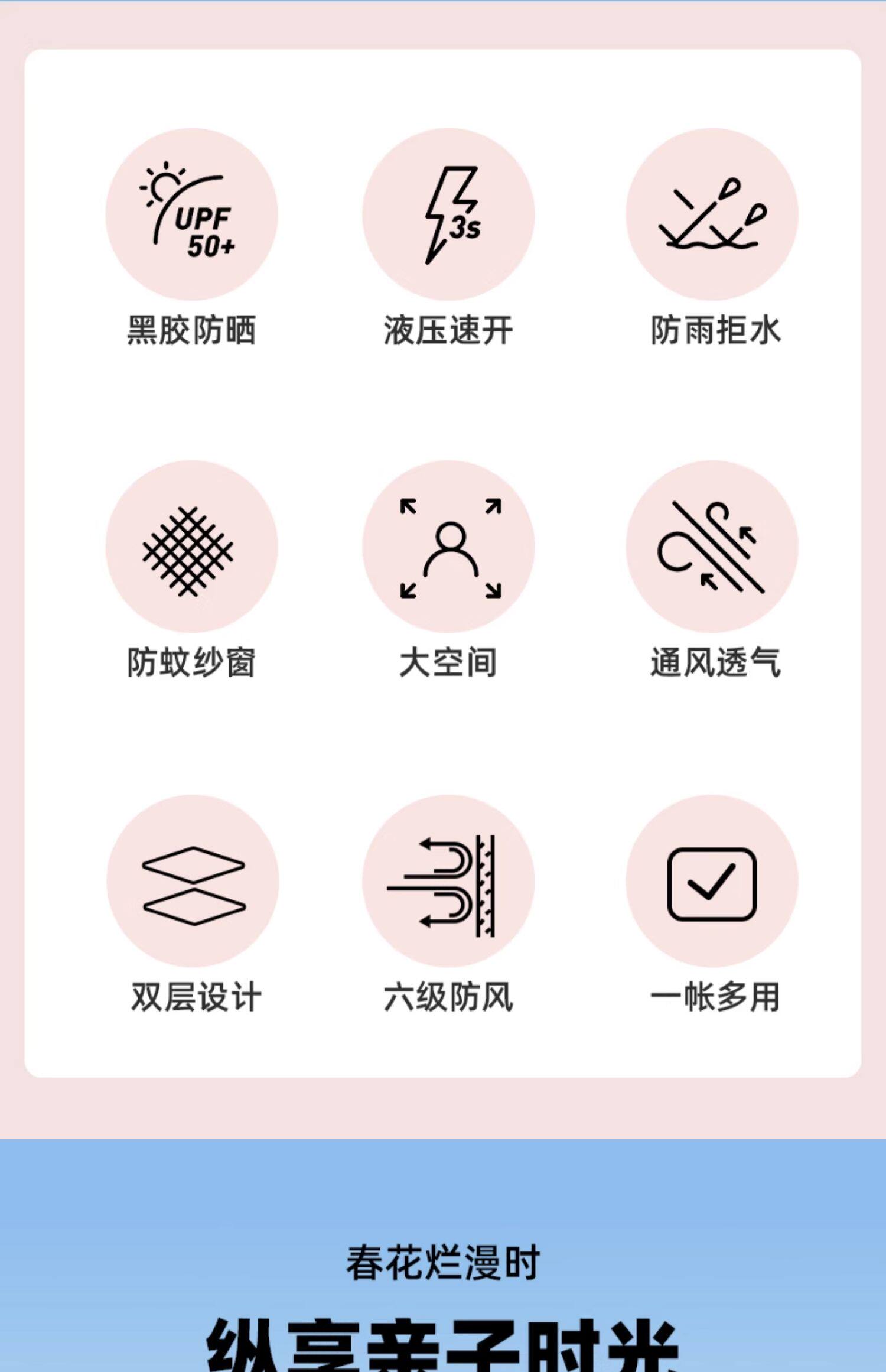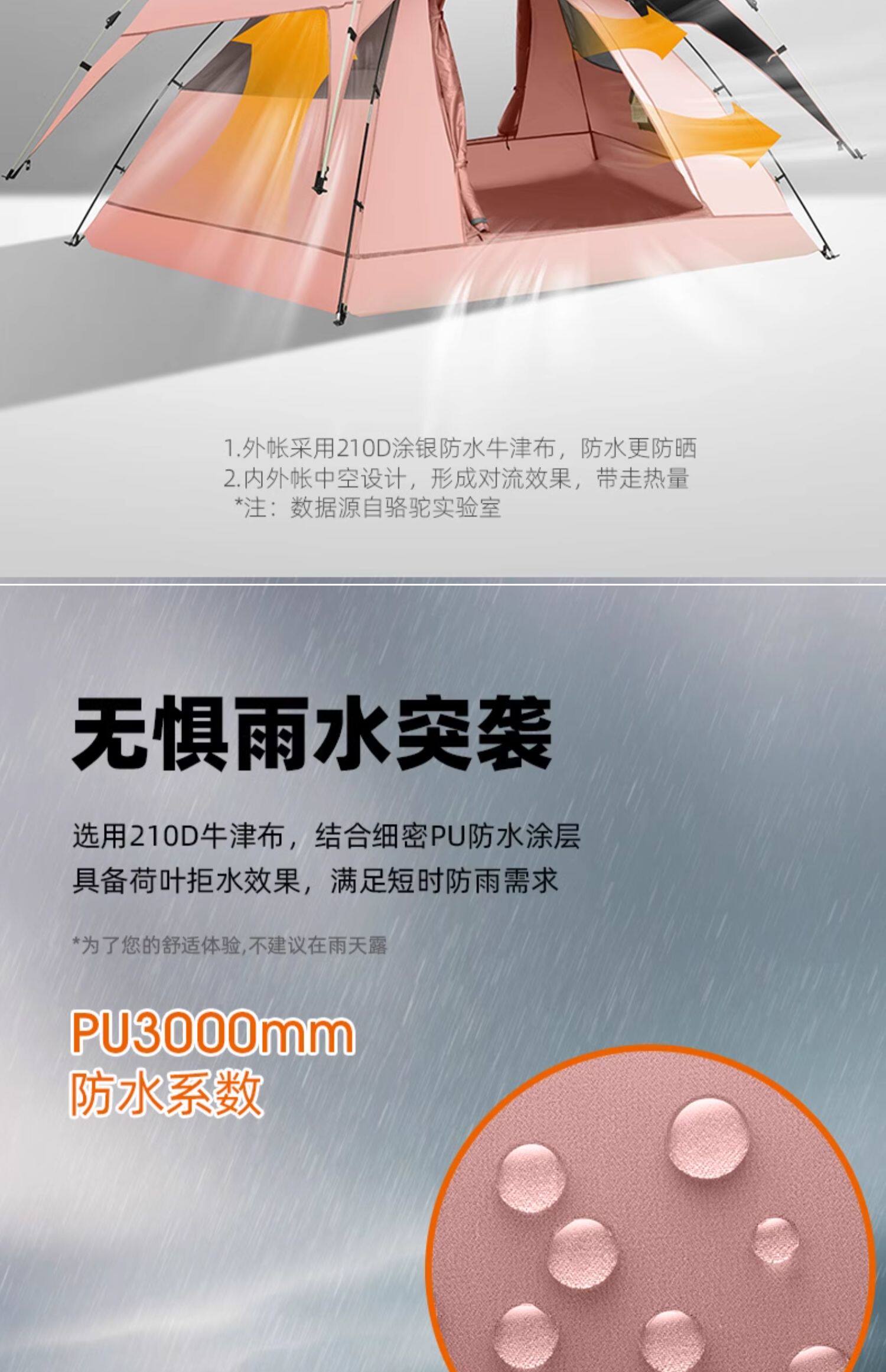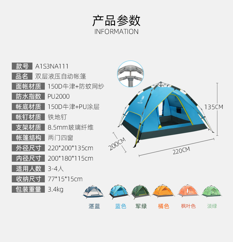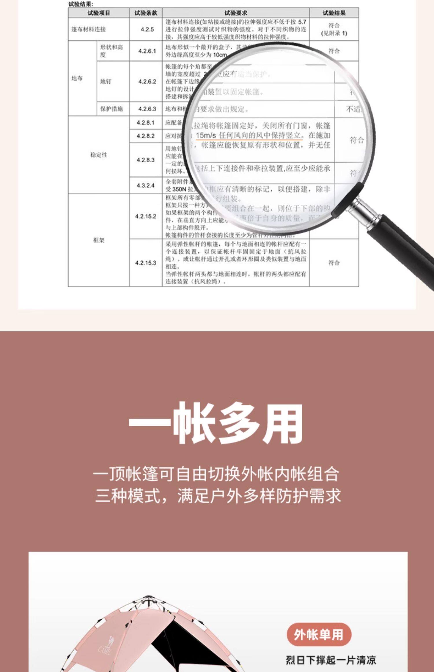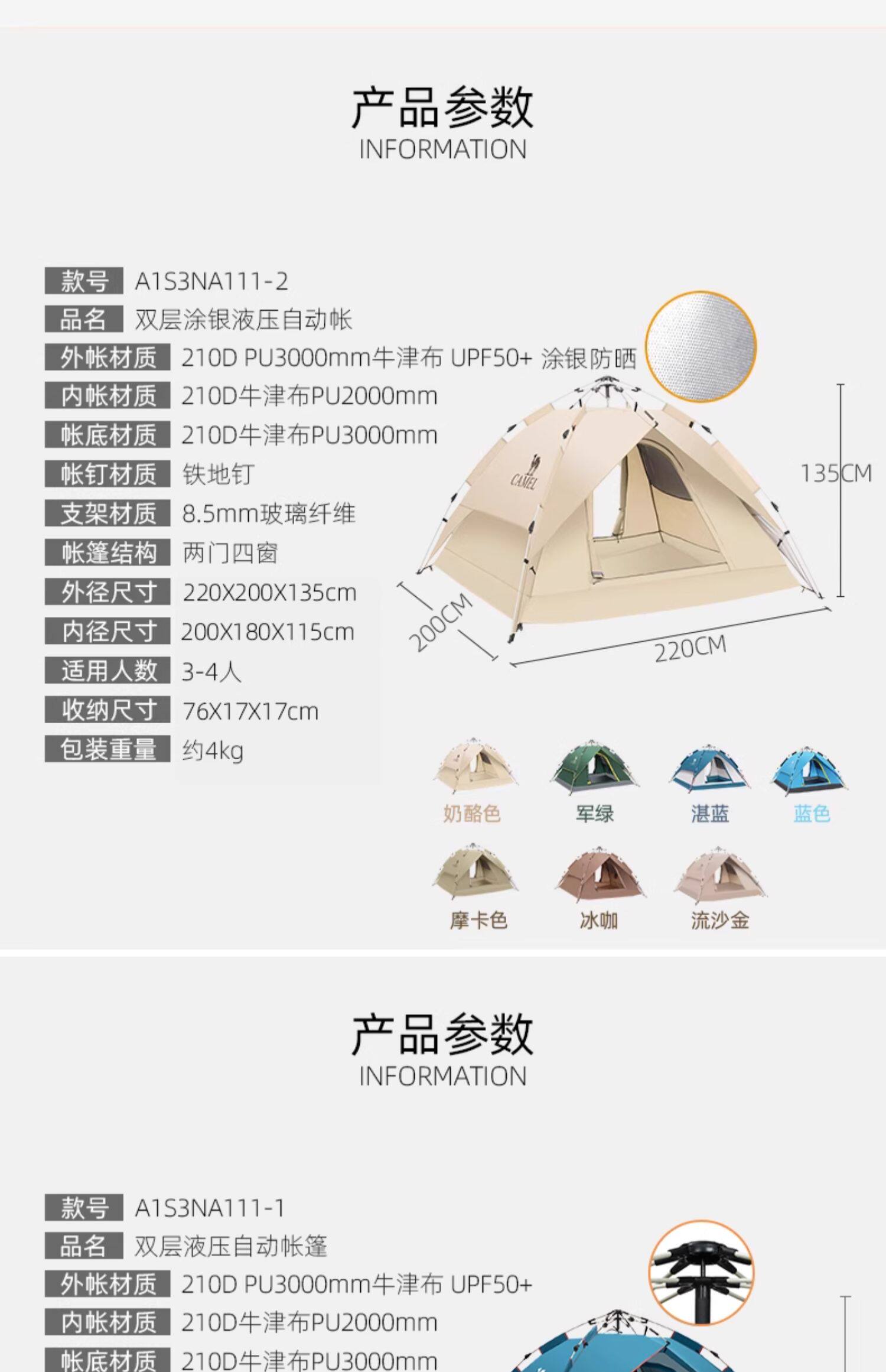 | 內帳材料 | 150D牛津PU1000mm防水塗層+致密網紗 |