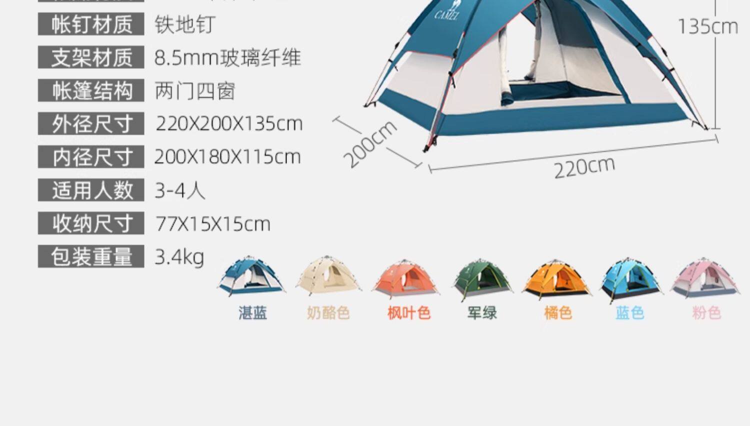 | 帳篷重量 | 3.4kg左右 |