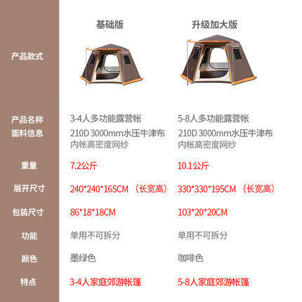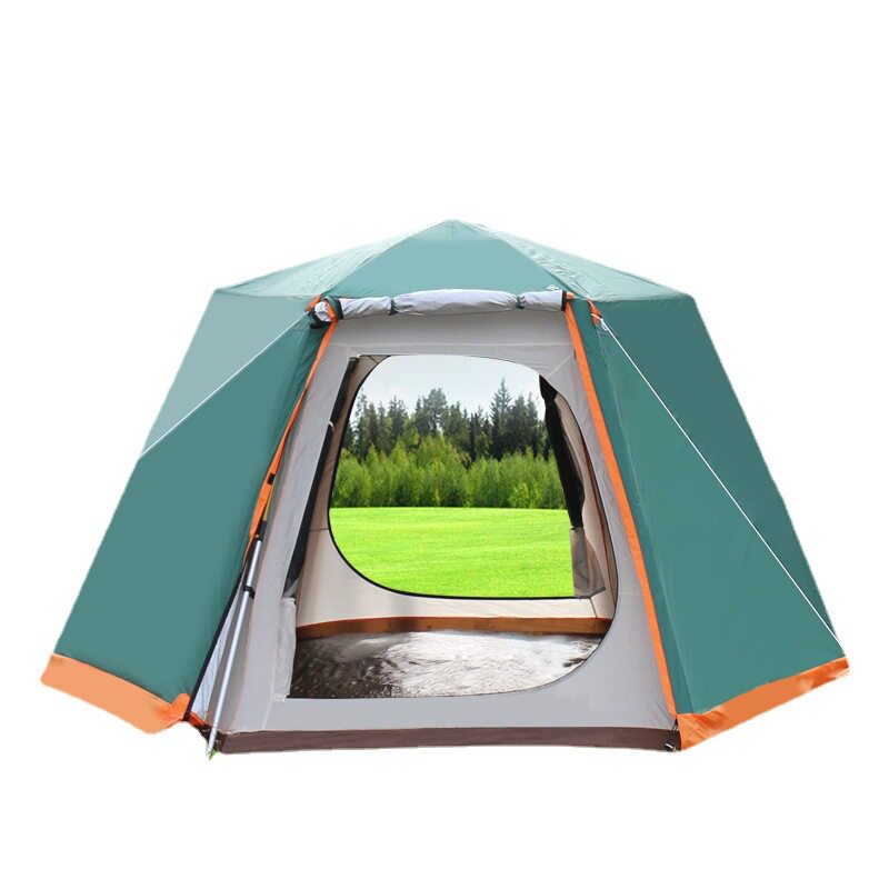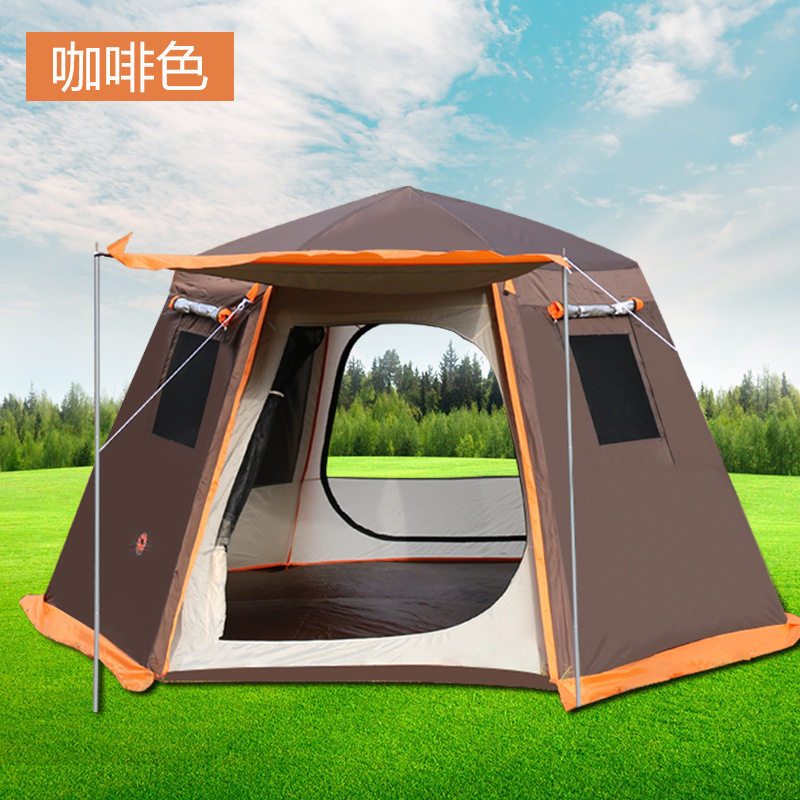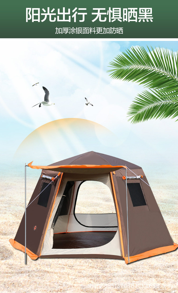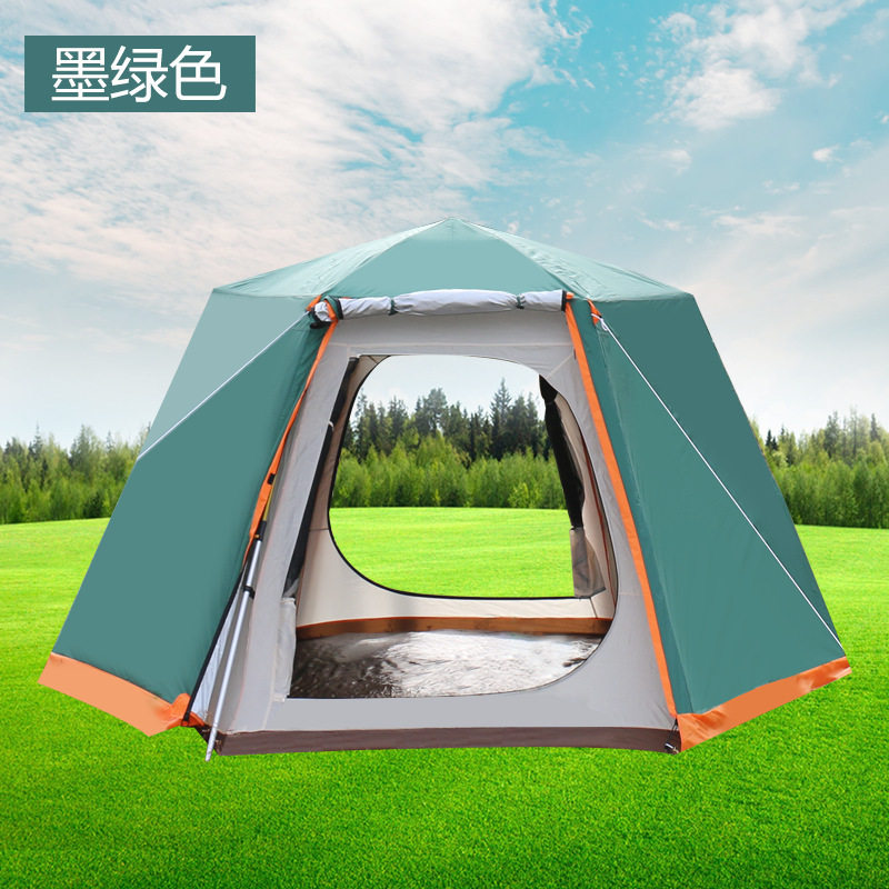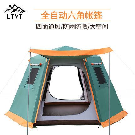 戶外全自動速開大型帳篷鋁合金六角3-4-5-8人曬防暴雨露野營雙層