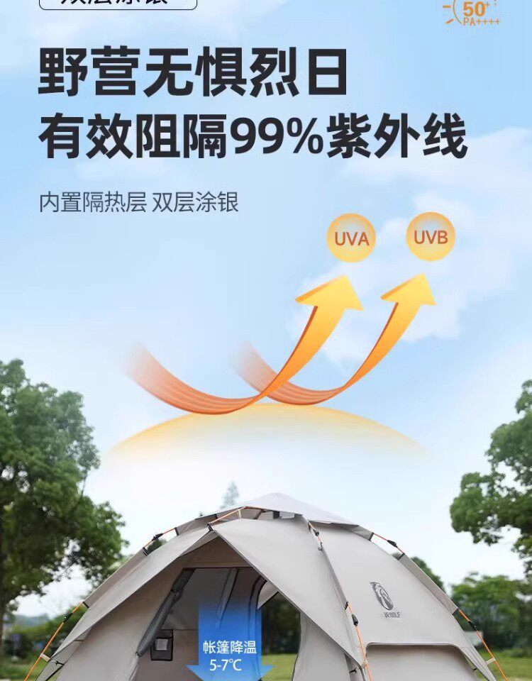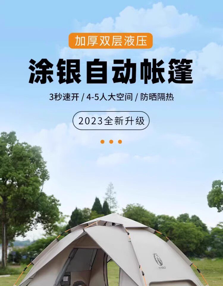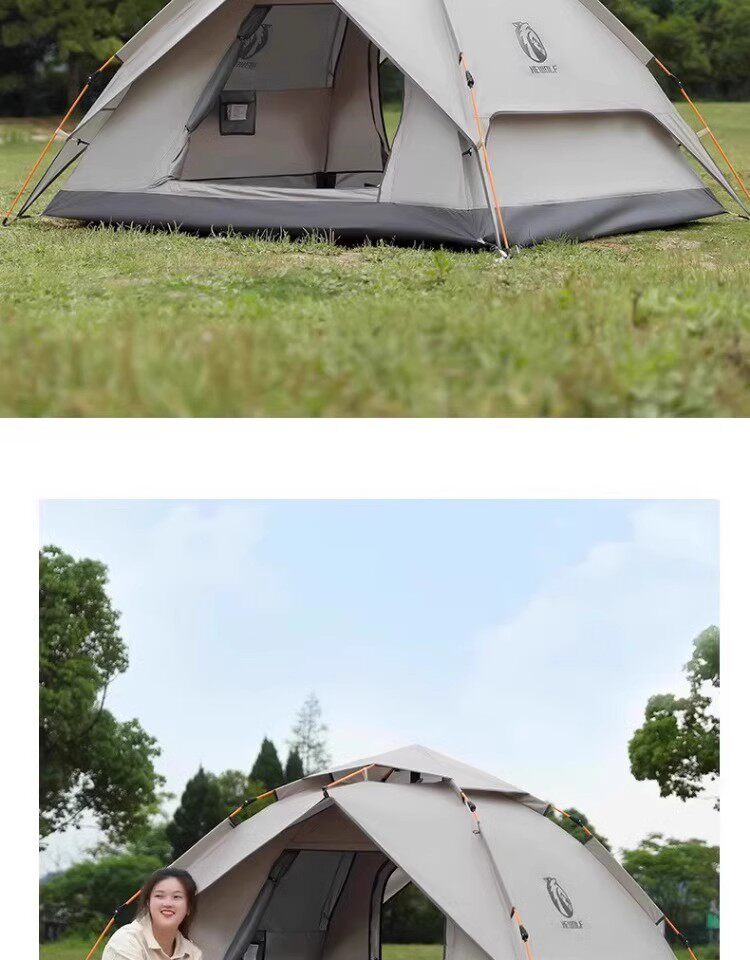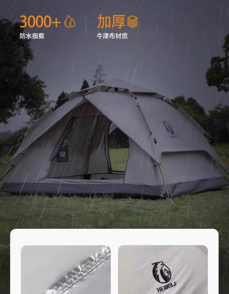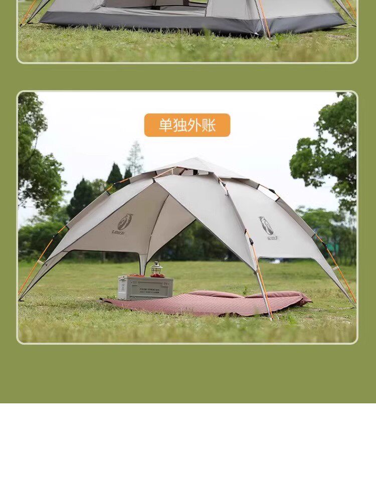 公狼黑膠全自動速開防風防暴雨帳篷戶外折疊野營過夜高級遮陽棚