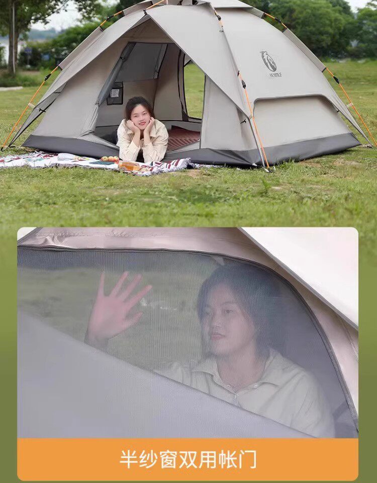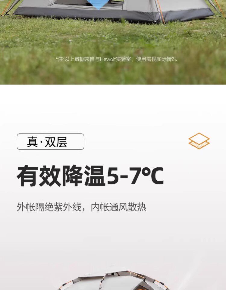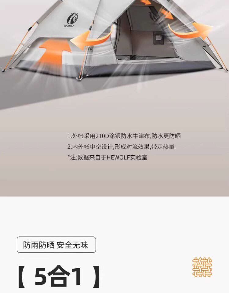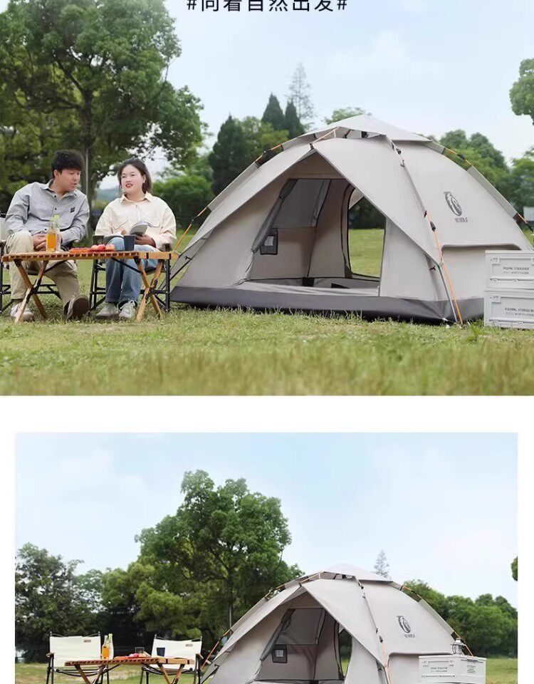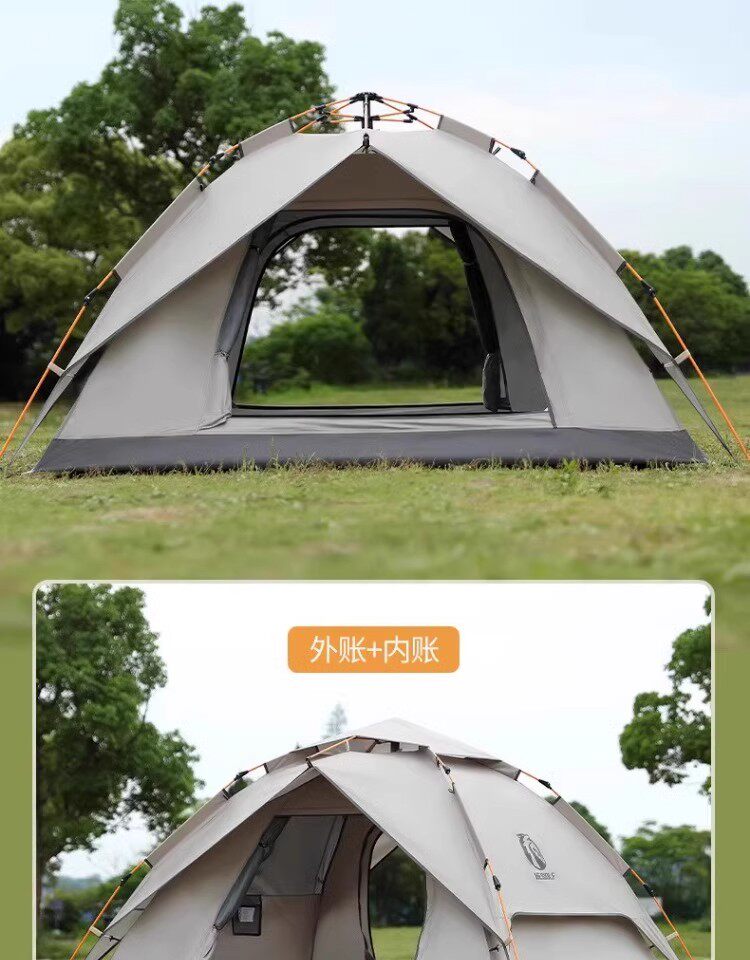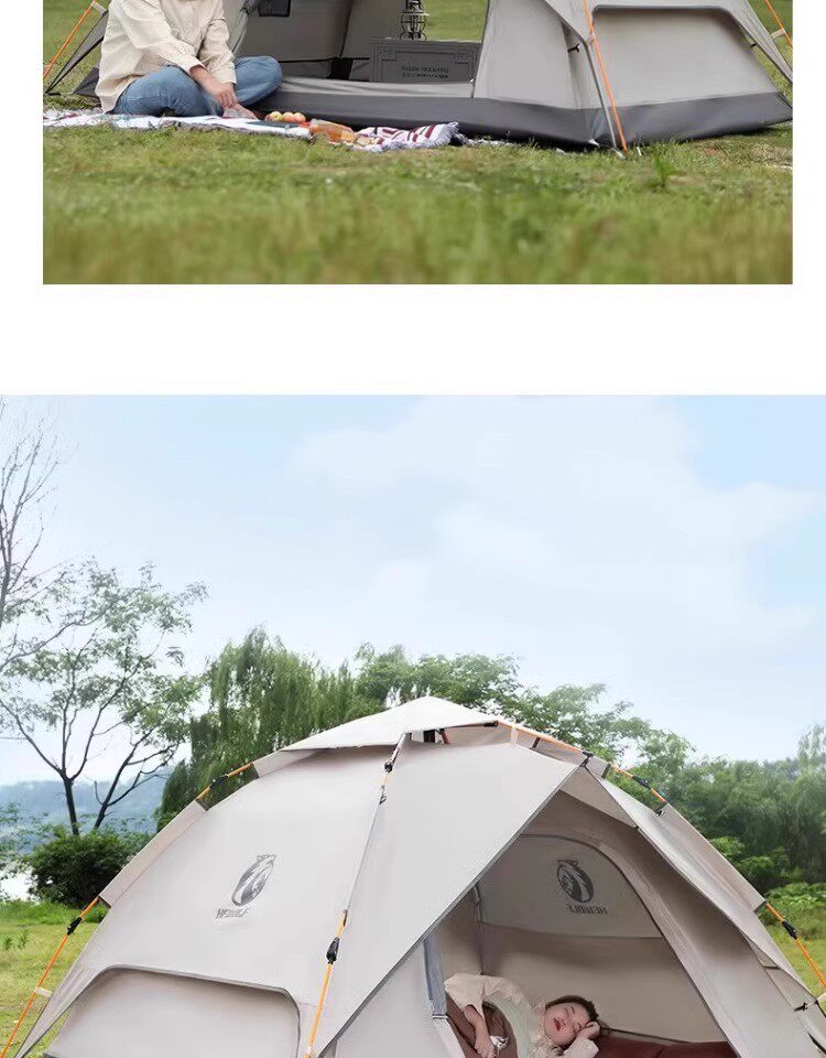 公狼黑膠全自動速開防風防暴雨帳篷戶外折疊野營過夜高級遮陽棚