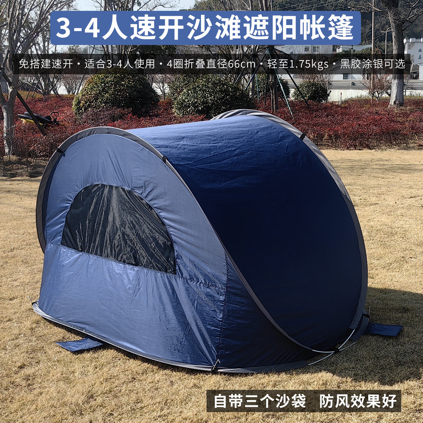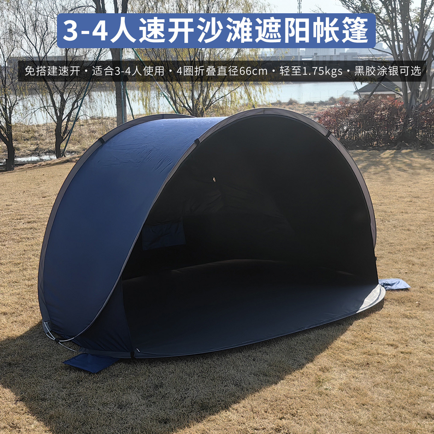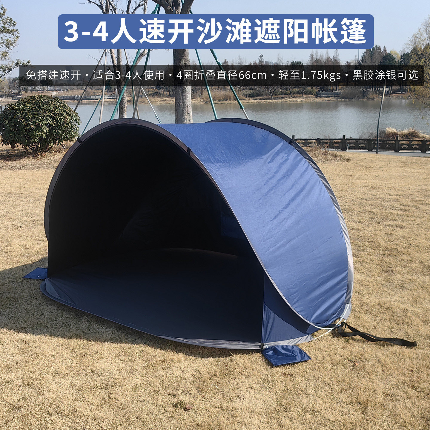 3-4人速開沙灘遮陽帳篷戶外可攜式免搭建防曬防風兒童帳篷塗銀黑膠