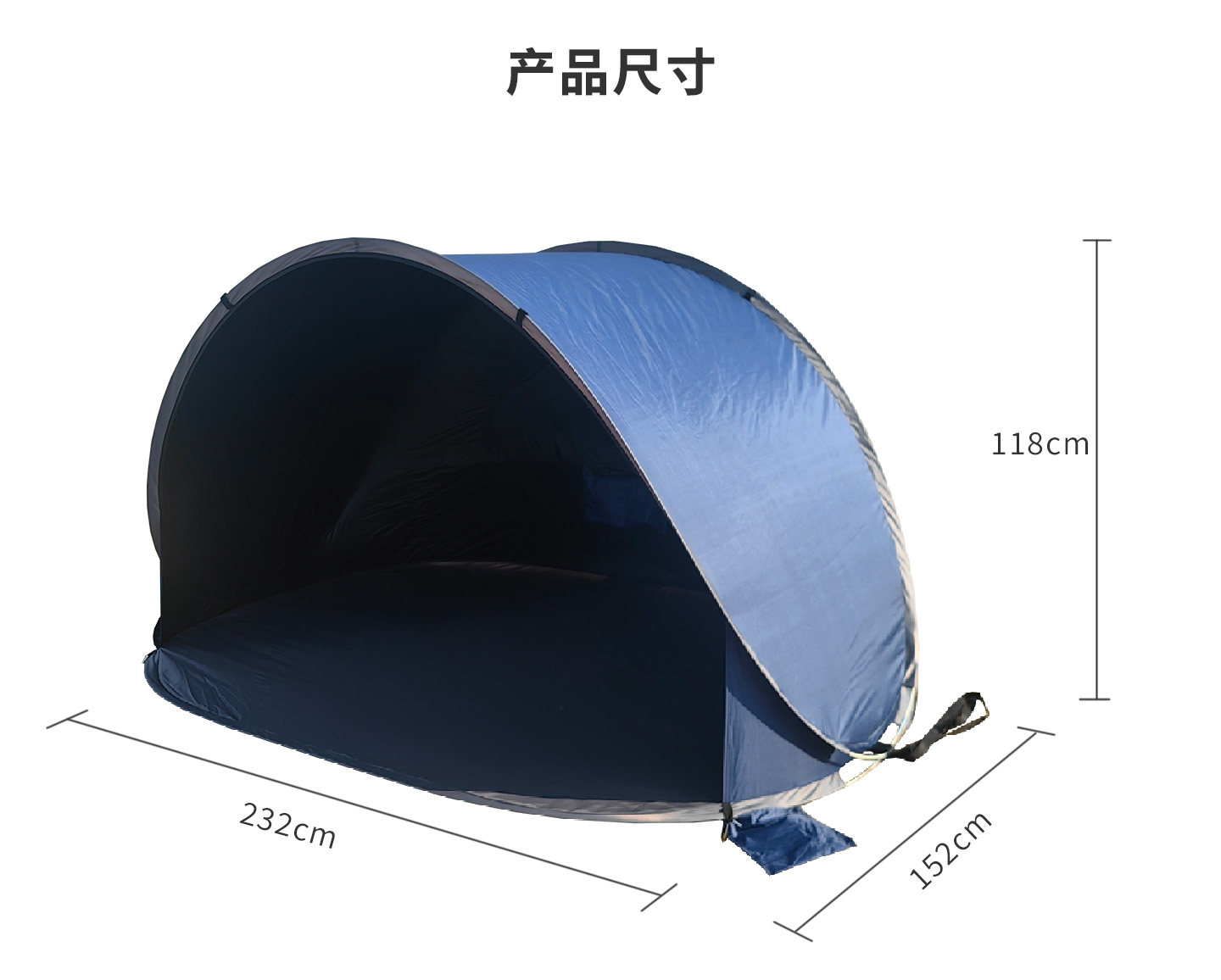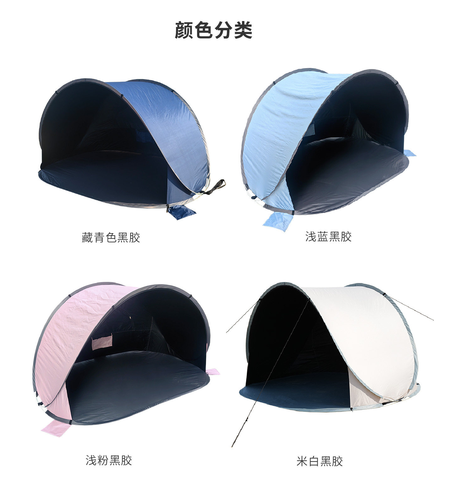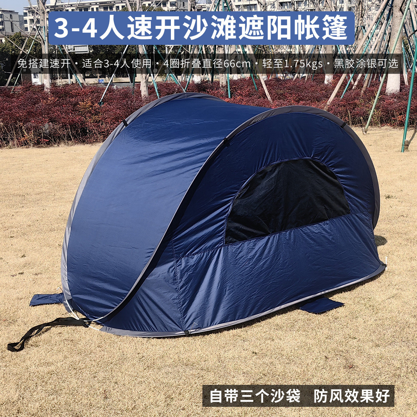 3-4人速開沙灘遮陽帳篷戶外可攜式免搭建防曬防風兒童帳篷塗銀黑膠