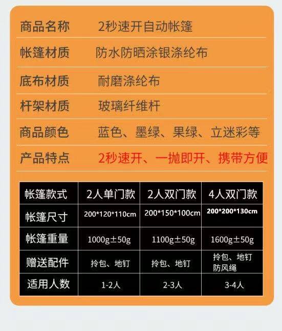 春遊帳篷戶外折疊可攜式野營過夜防雨加厚露營裝備遮陽全自動速開