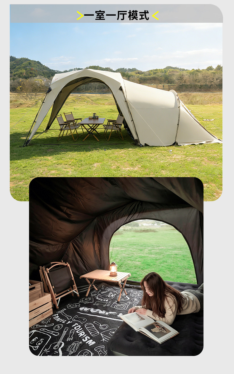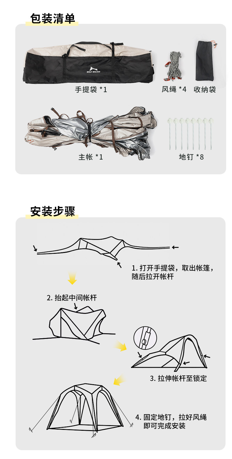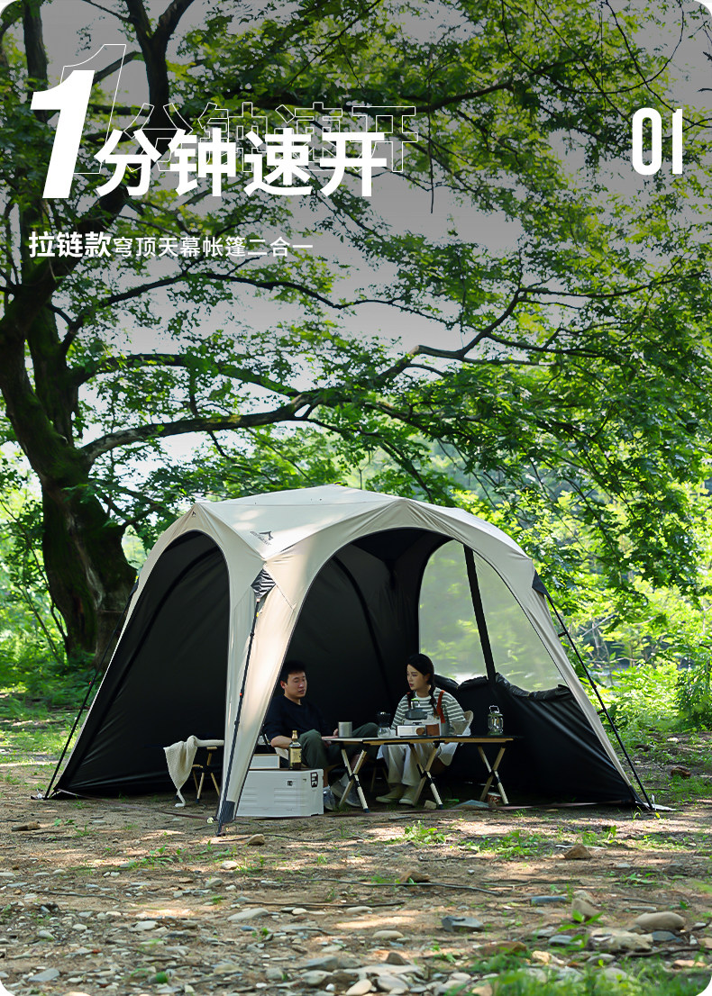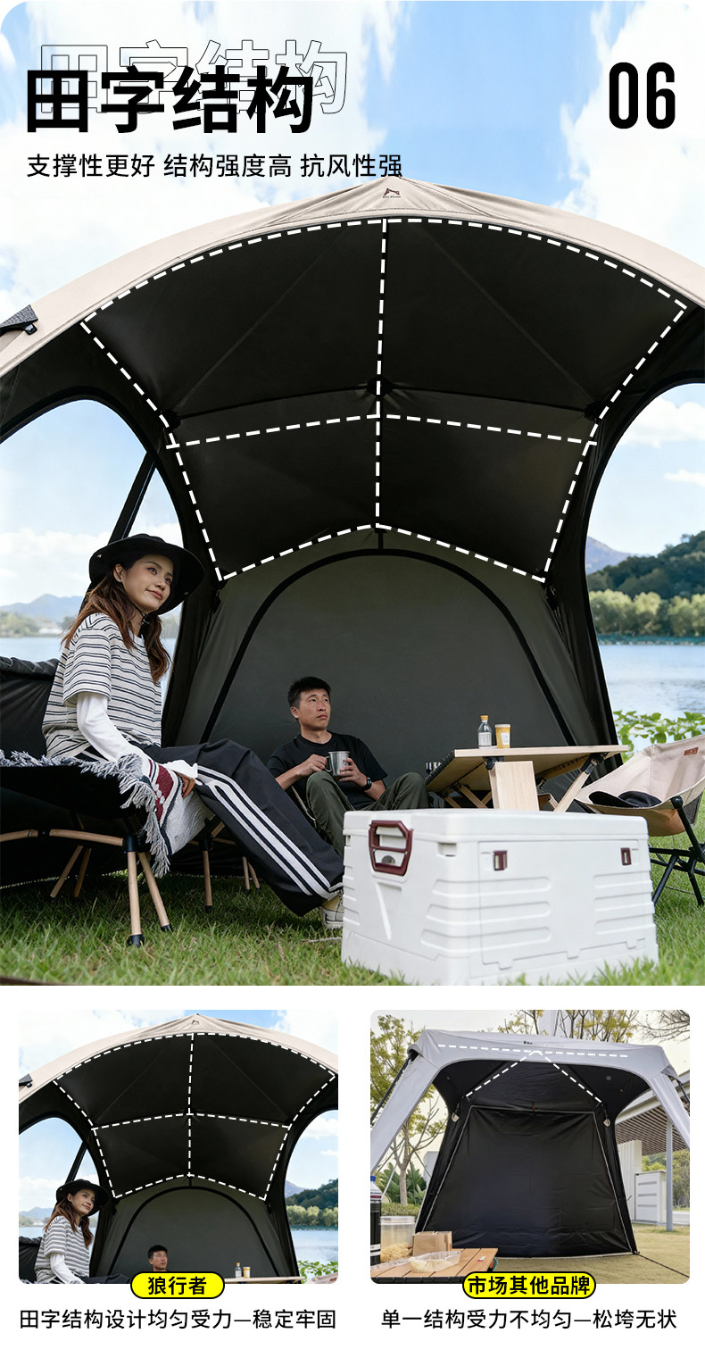 狼行者速開自動穹頂天幕帳篷二合一戶外露營鈦黑膠遮陽棚野營防曬