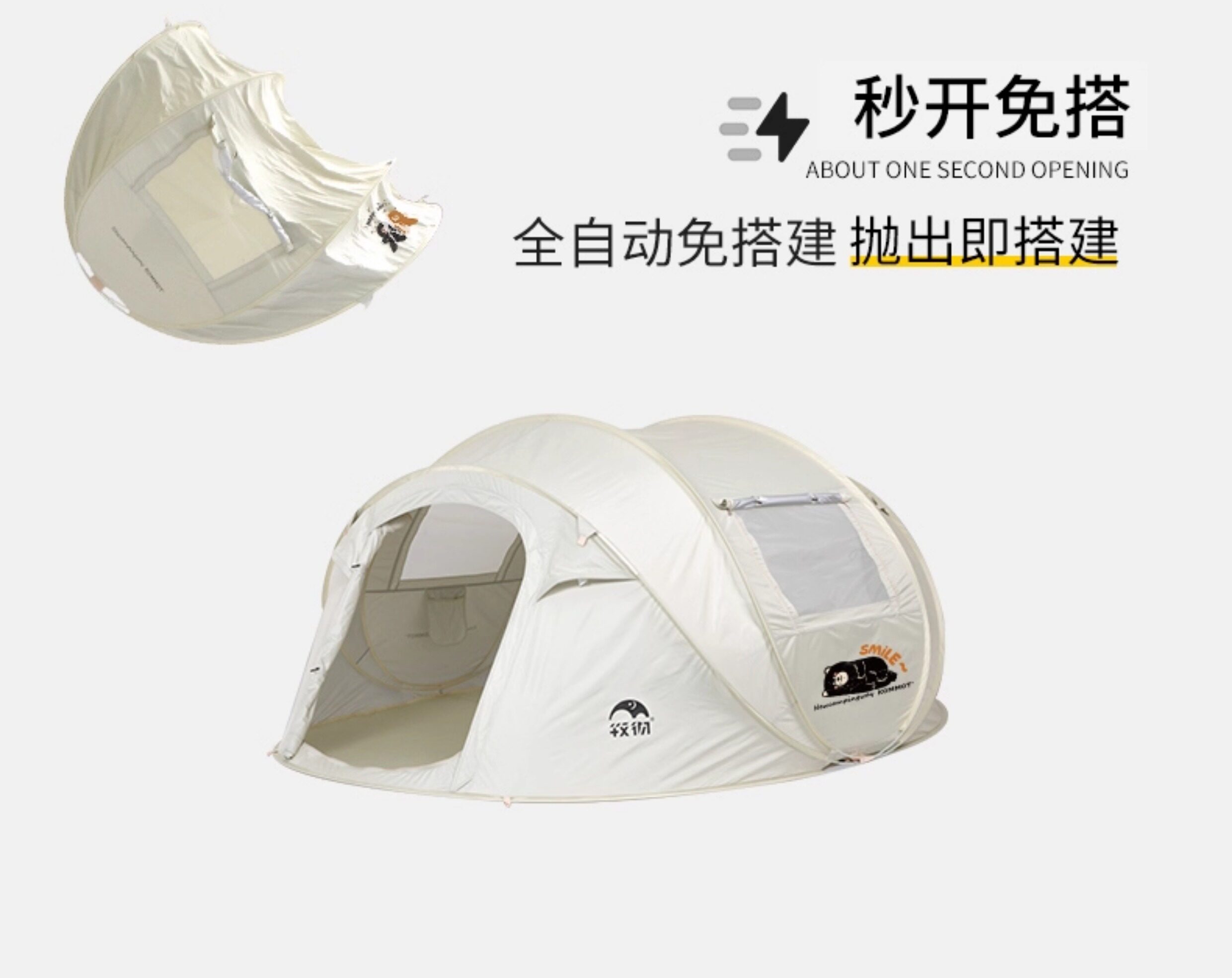 【小熊限定款】牧徹KOMMOT一拋速開全自動免搭建帳篷戶外防雨防曬