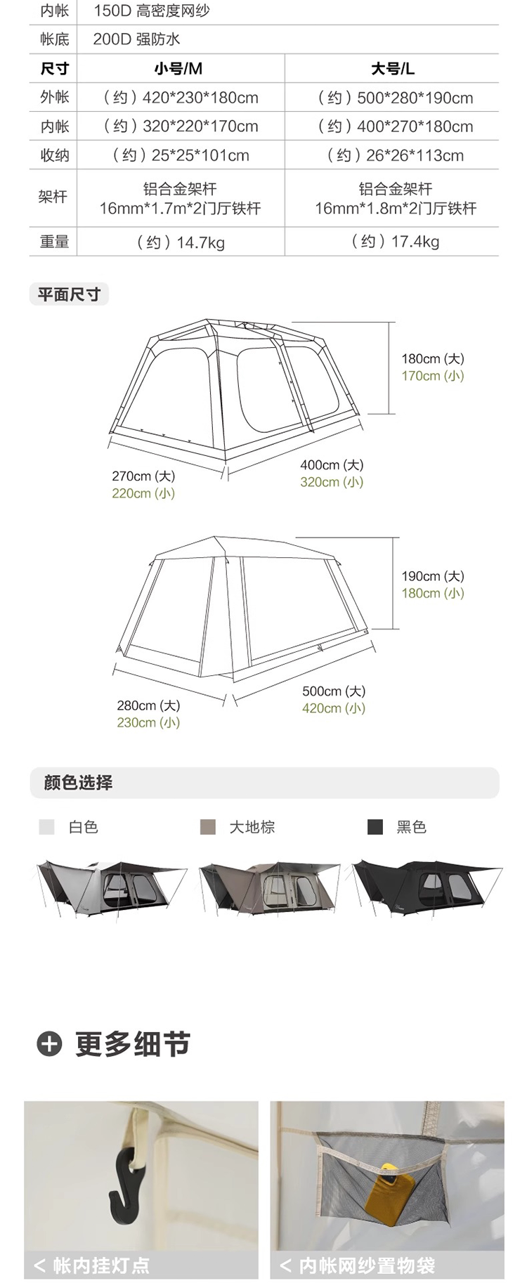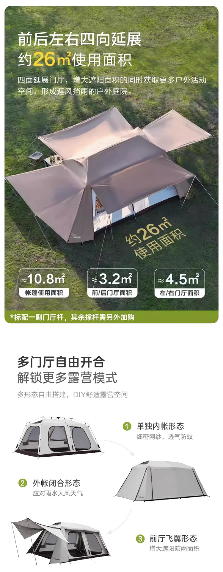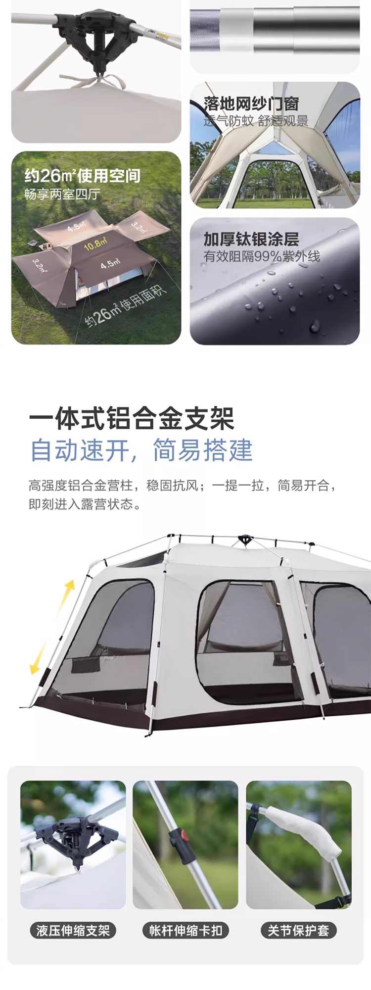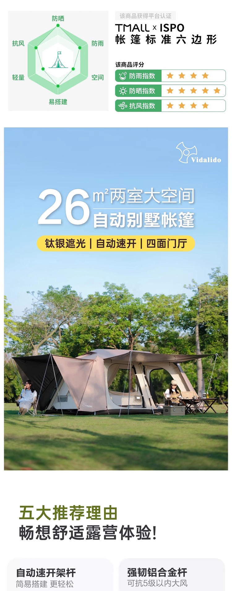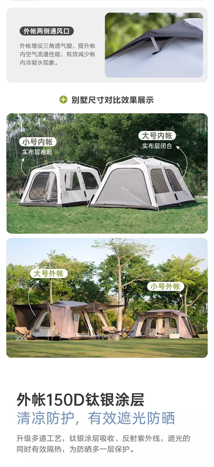 維達利多屋脊別墅帳篷戶外速開防雨露營遮光可攜式過夜全自動客廳