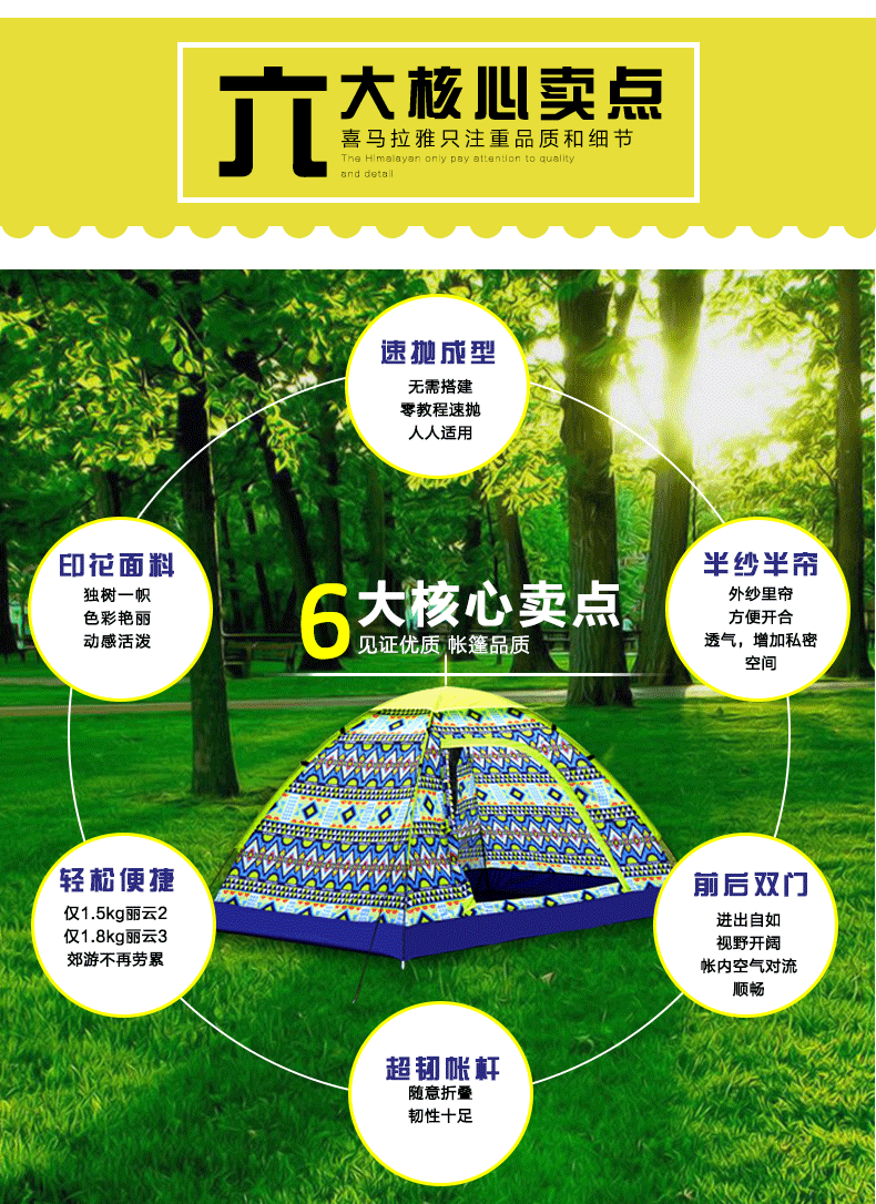 喜馬拉雅郊遊野餐帳篷全自動彈開戶外速開春遊公園可攜式兒童帳篷
