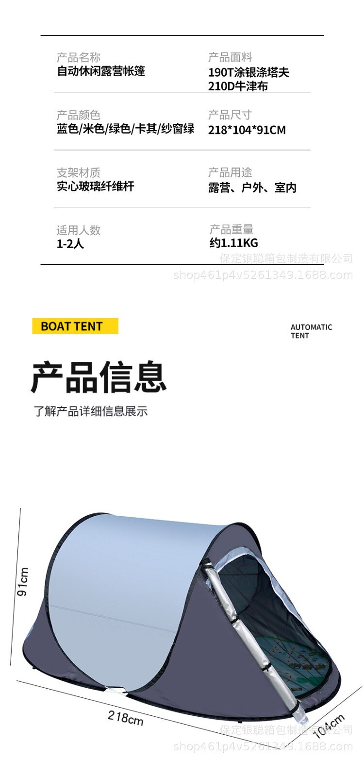 戶外加厚船帳篷速開可攜式可折疊防風防曬塗層室內露營野營手拋帳