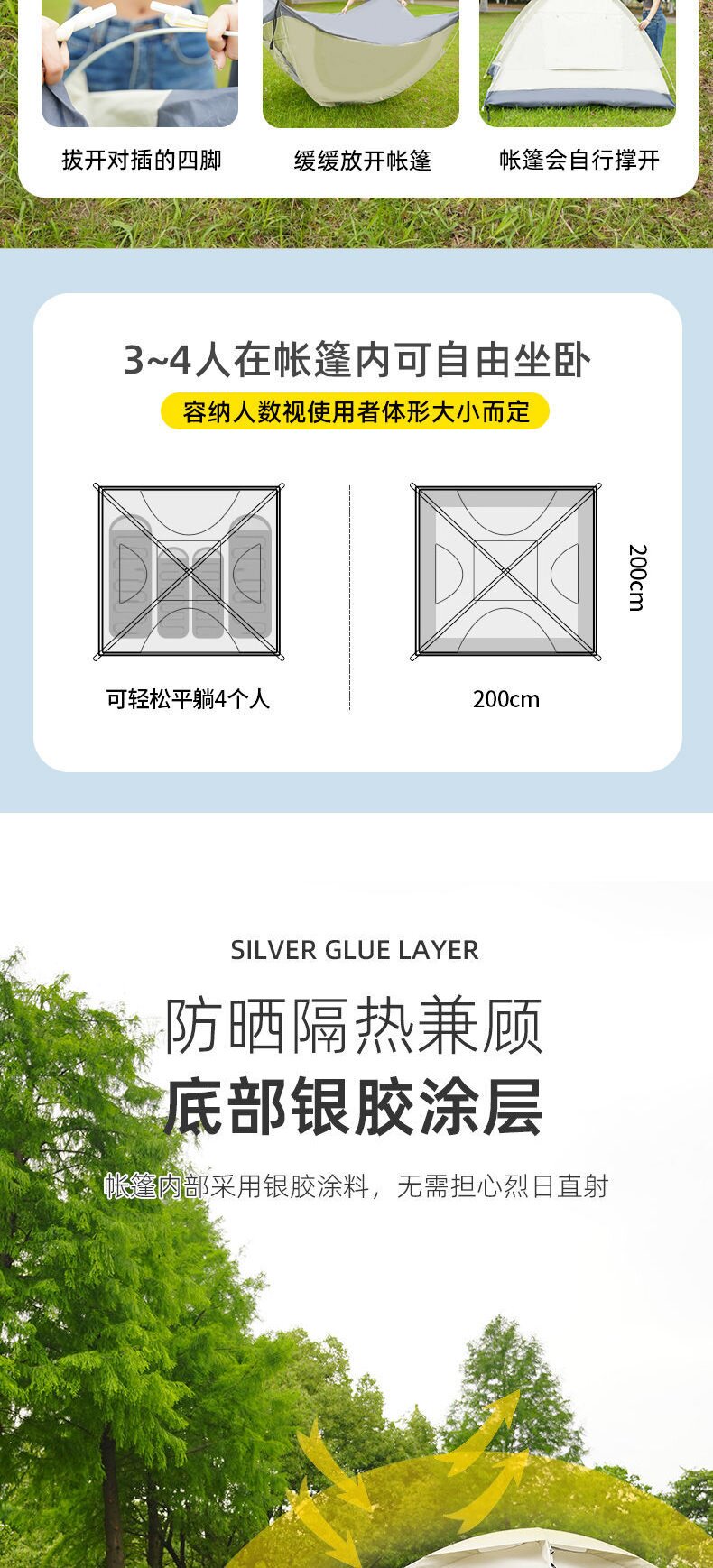 春遊可攜式帳篷免搭建戶外折疊輕量化野餐露營自動速開3-4人簡易