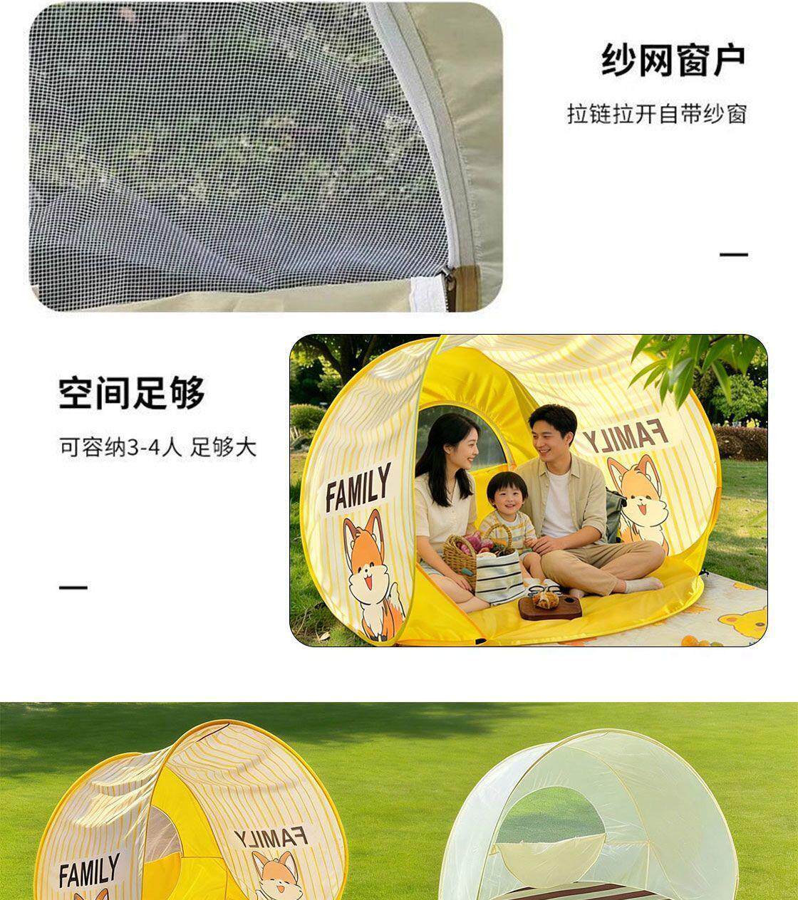 公園帳篷兒童遊戯屋沙灘遮陽防曬野餐帳篷天幕露營一秒速開免搭建