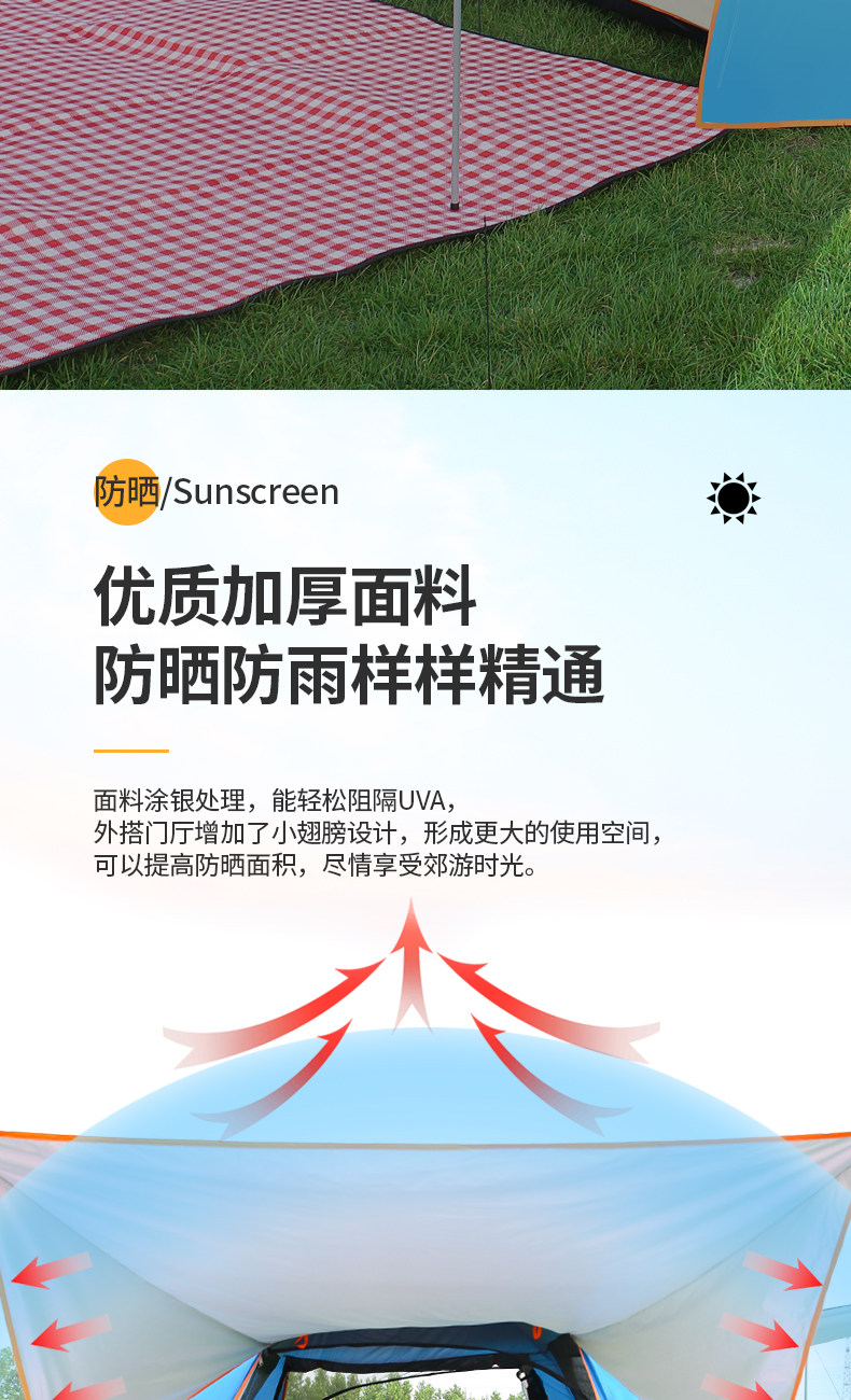 【防暴雨】帳篷戶外可攜式折疊野營自動彈開加厚速開露營裝備防曬
