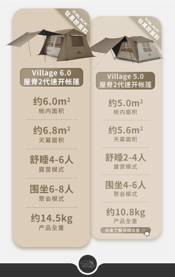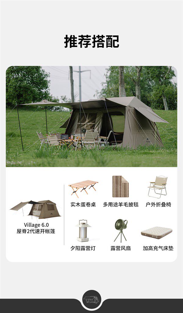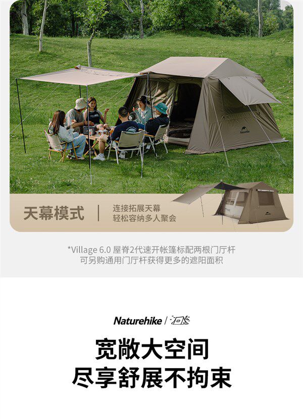 Naturehike挪客Village 6.0屋脊2代速開帳篷戶外露營防雨小屋帳