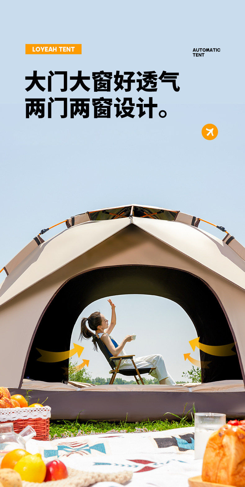 德國2026全自動速開帳篷戶外露營3秒搭建防雨防曬加大空間全家人