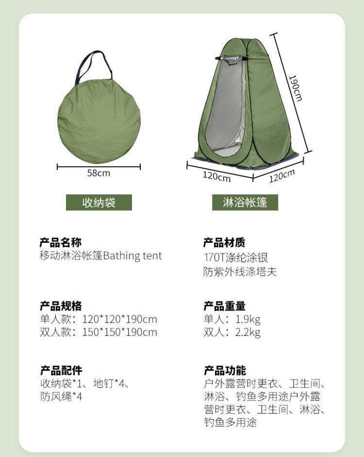 戶外帳篷更衣防透加厚洗澡浴罩換衣服移動厠所釣魚免搭建速開浴帳