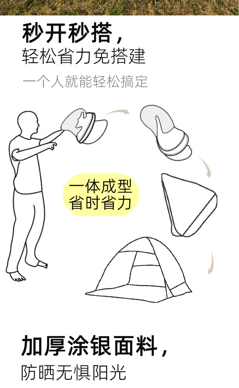 一秒速開輕量化雙人速開戶外防曬可攜式沙灘帳篷兒童可攜式遮陽防曬