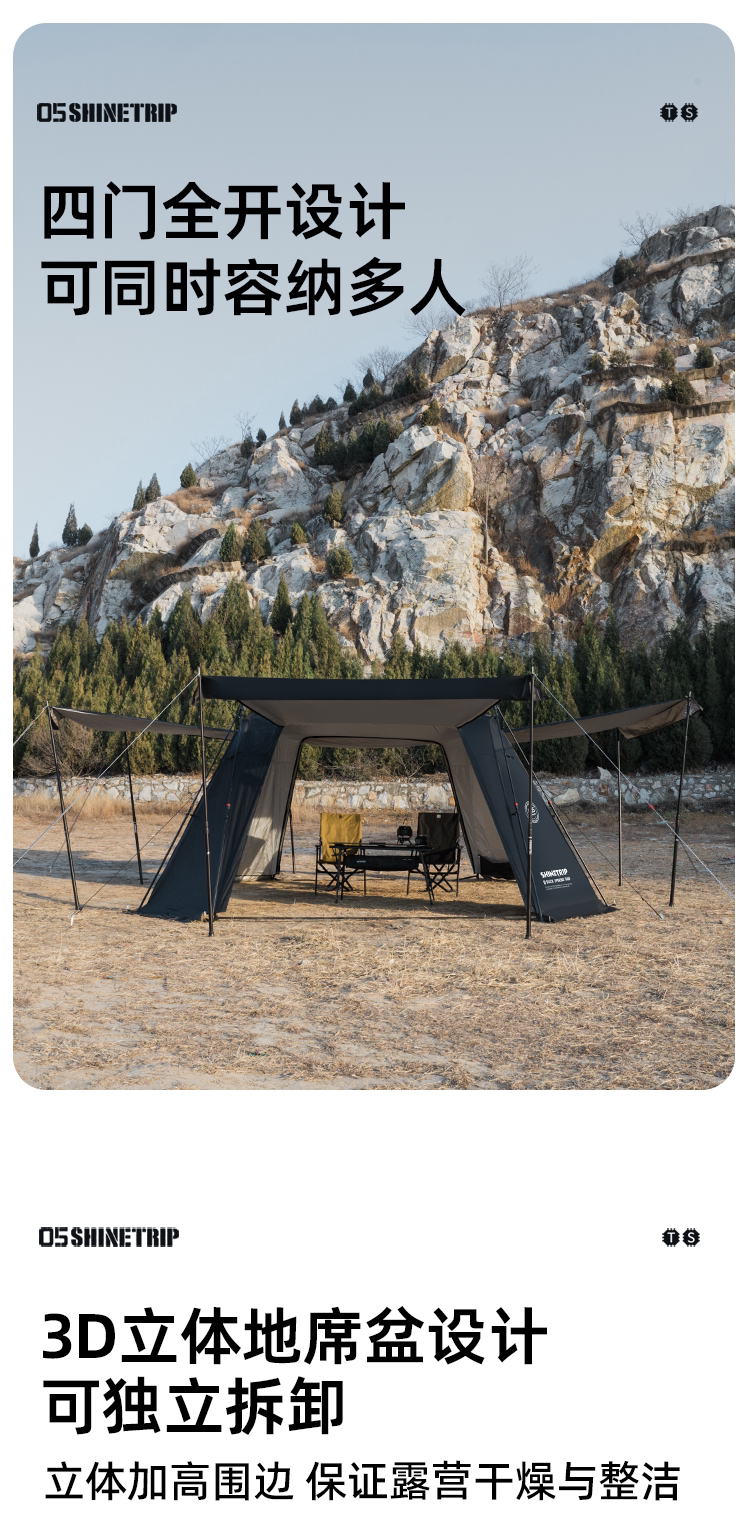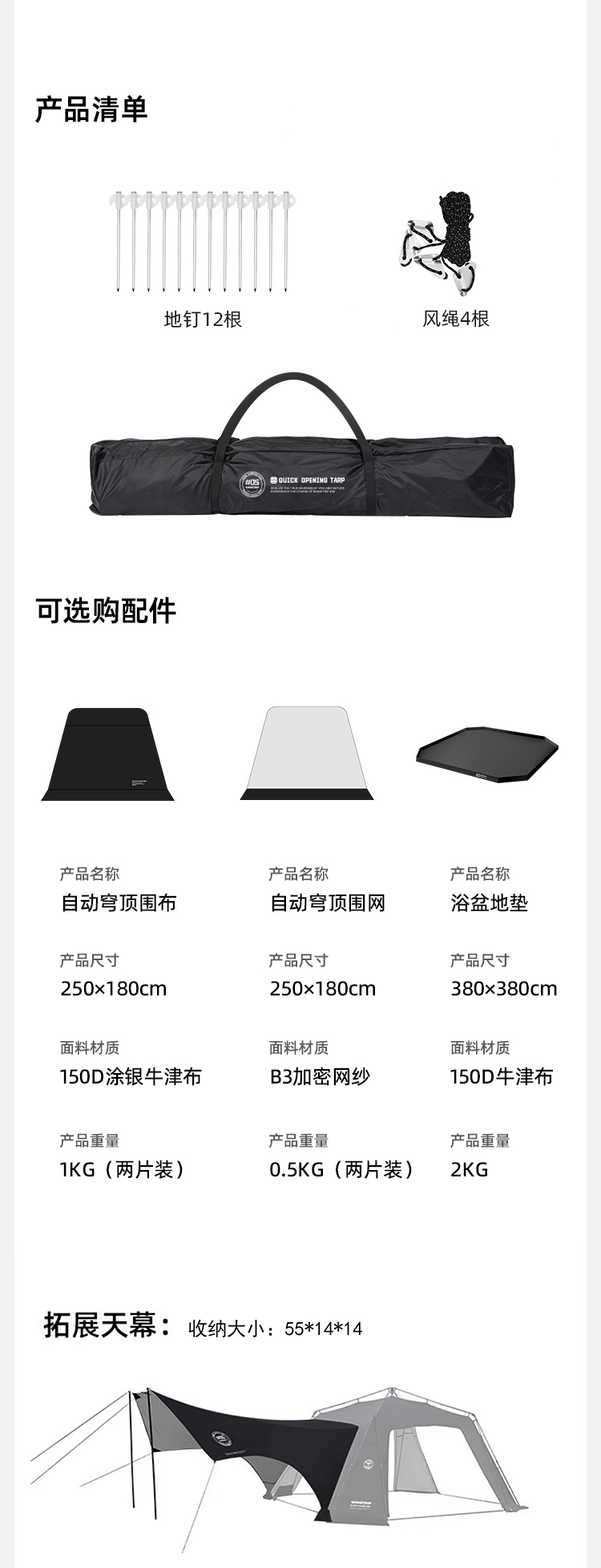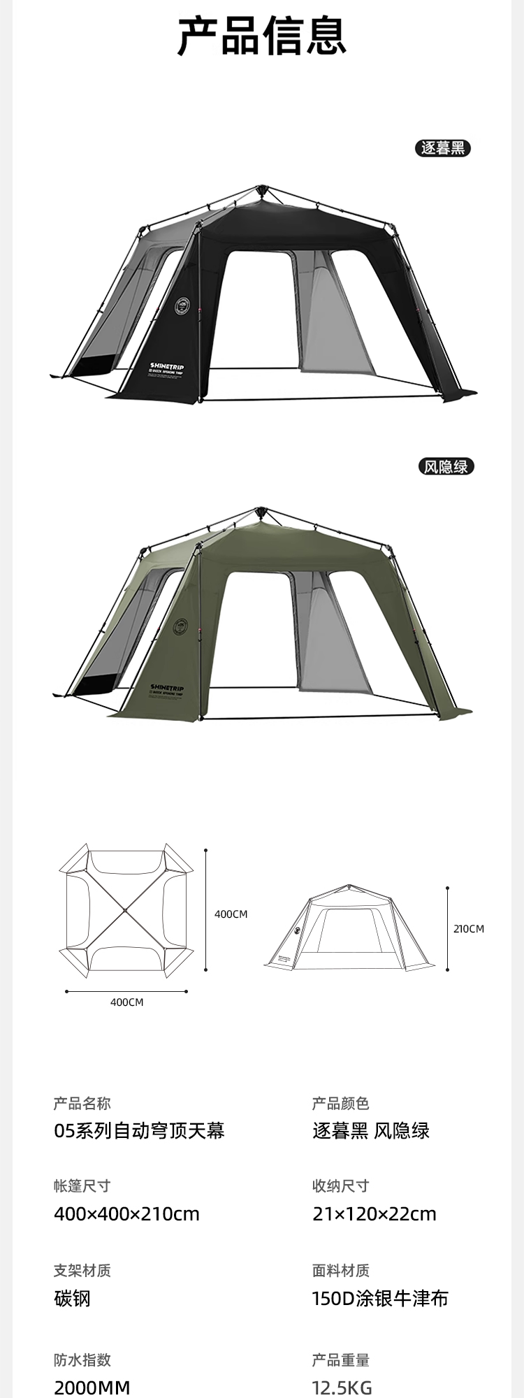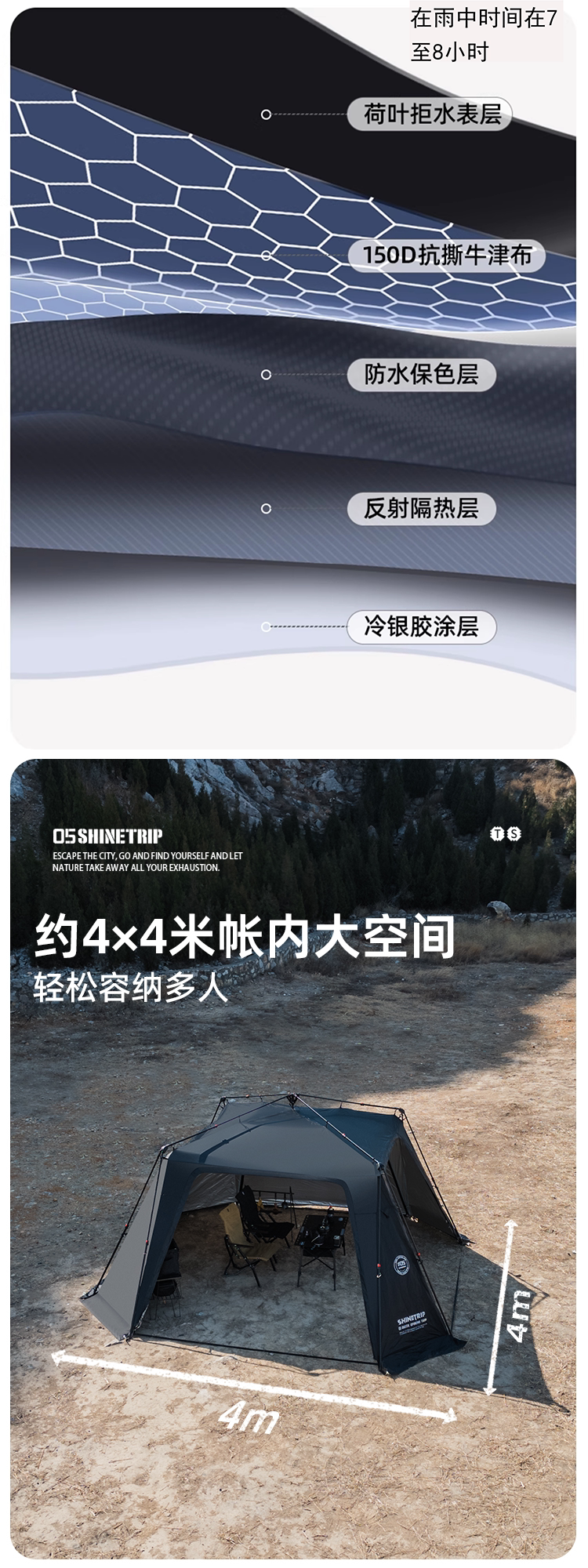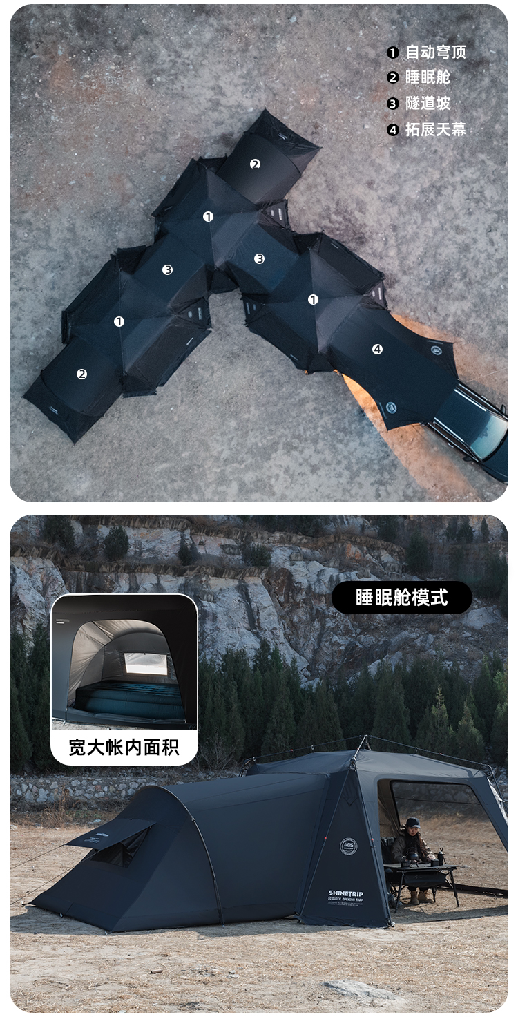 山趣一體全自動速開穹頂天幕帳篷防曬防雨公園野外戶外露營可攜式