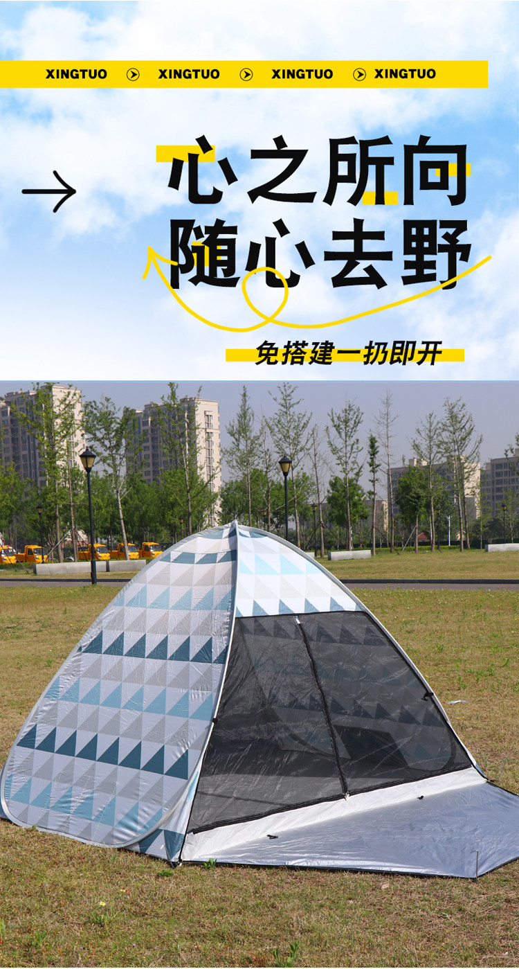 行拓速開帳篷戶外簡易式可攜式折疊野營過夜防雨防曬露營自動野外