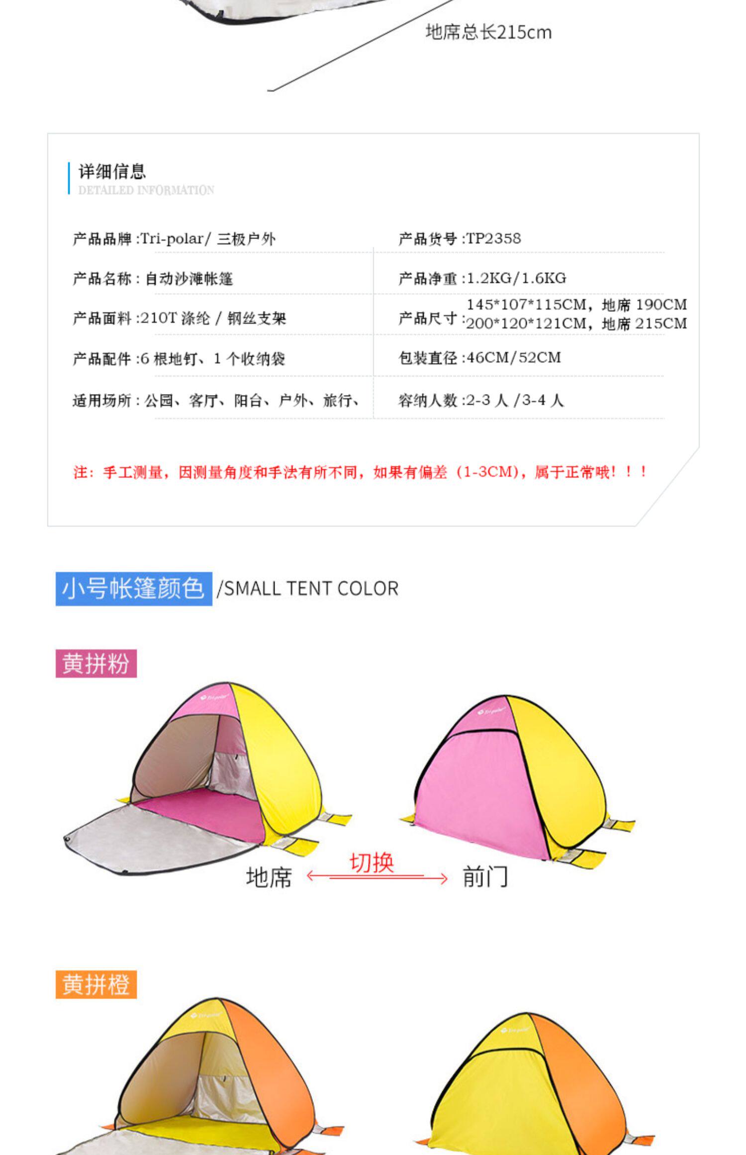 沙灘帳海邊戶外涼棚2人速開輕便寶寶兒童多用室內遊戯屋帳篷