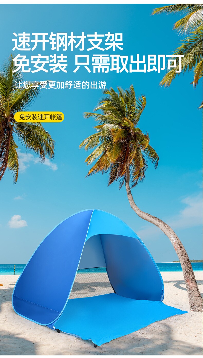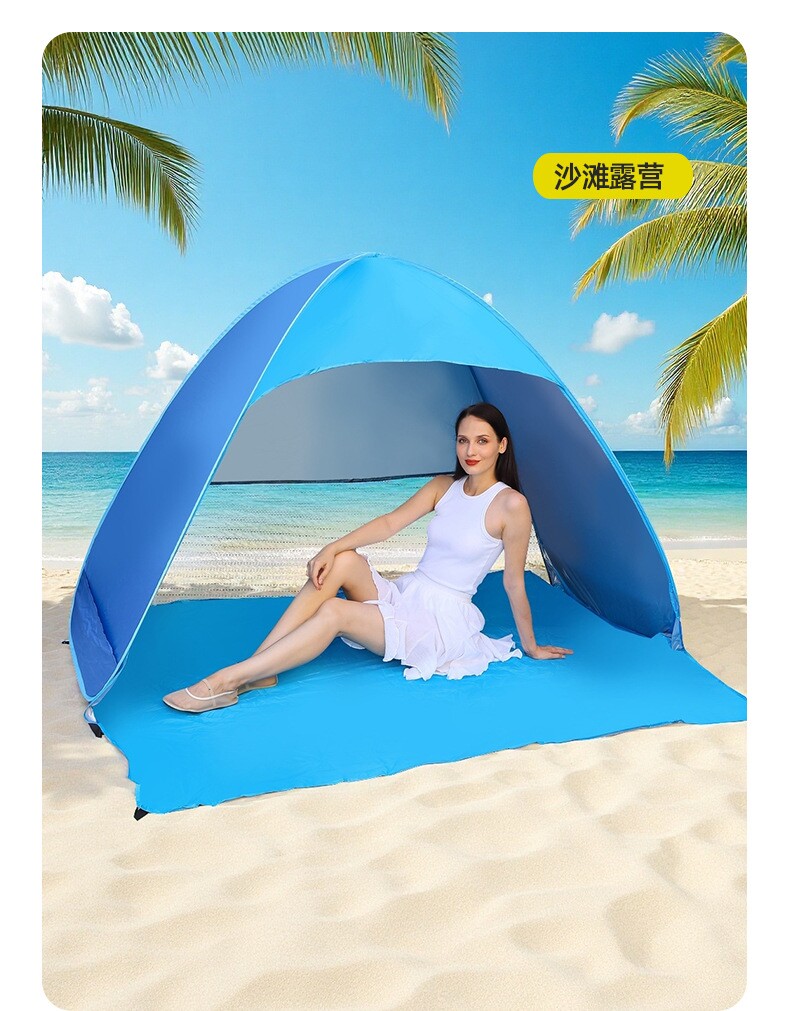 春夏露營全自動沙灘遮陽帳篷2秒速開戶外簡易遮陽棚海邊休閒涼棚