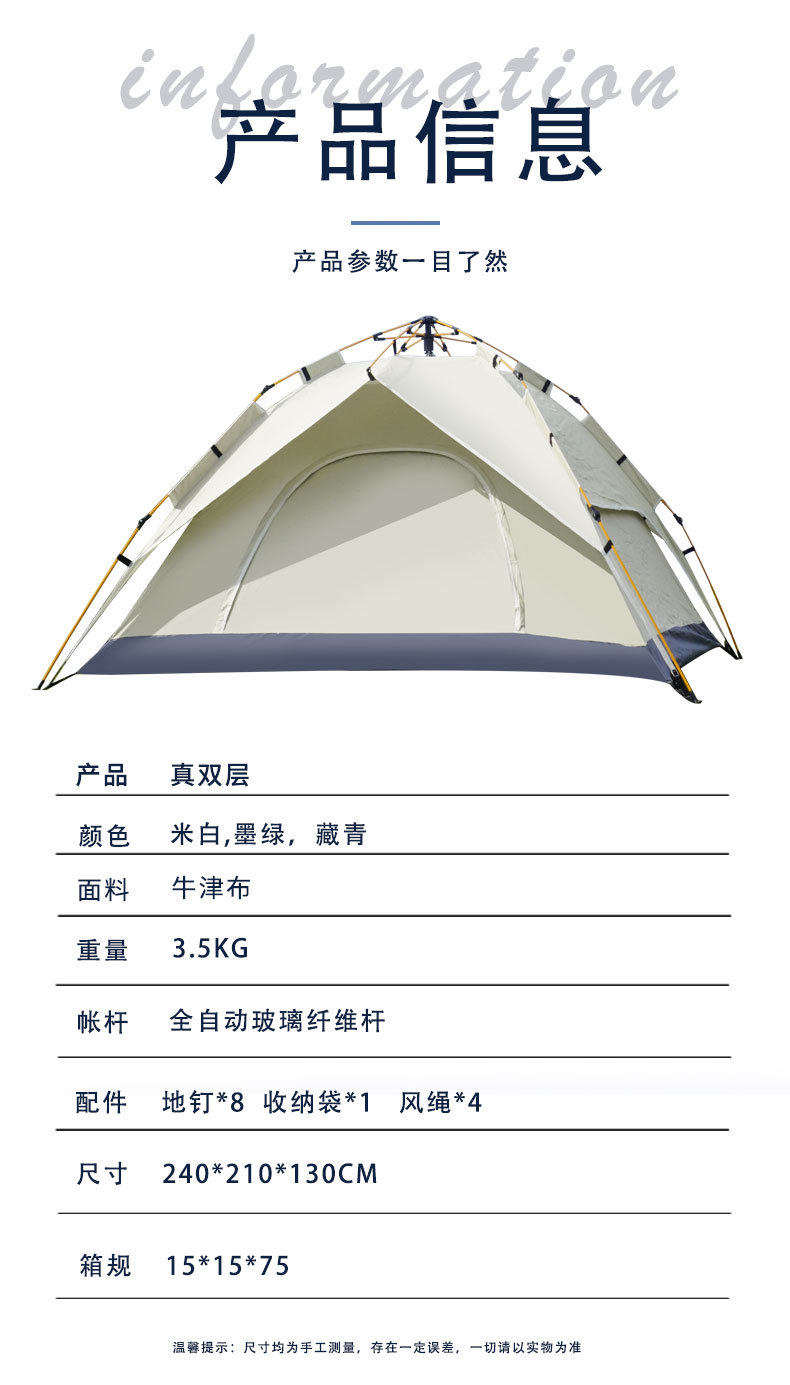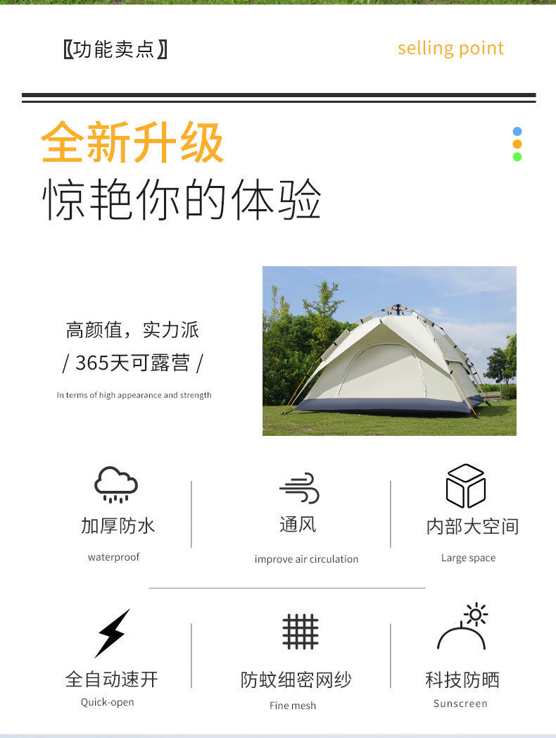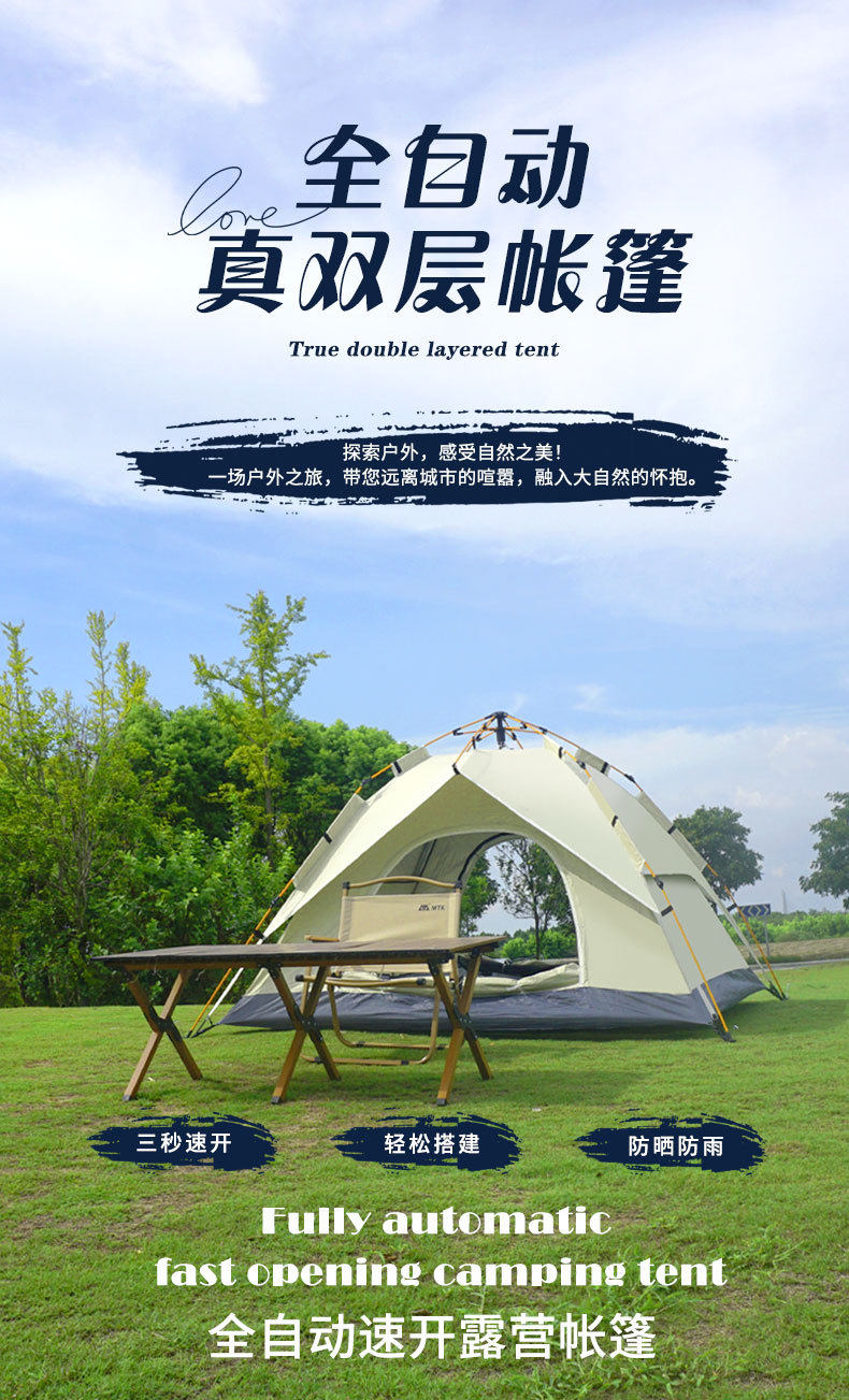 戶外露營折疊帳篷全自動速開帳篷3-4人遊野露營遮陽雙層帳篷