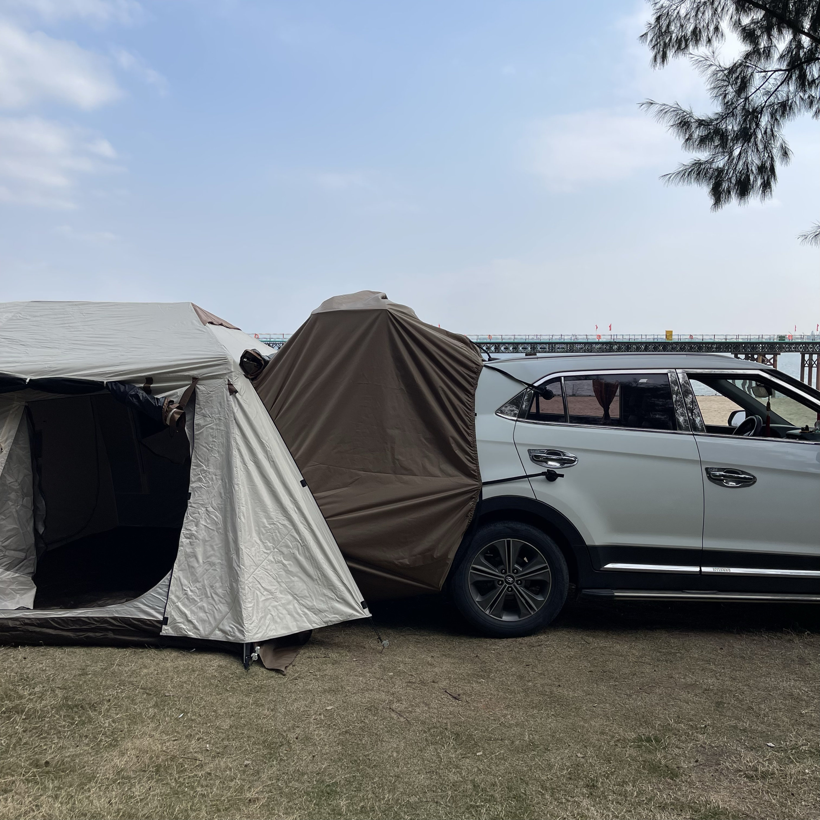 速開穹頂超大內帳網紗通風防蚊車尾連接件長廊戶外露營公園帳篷