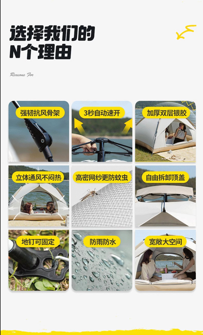 戶外帳篷全自動防曬防風速開家用折疊防水野外露營野餐帳篷3-4人