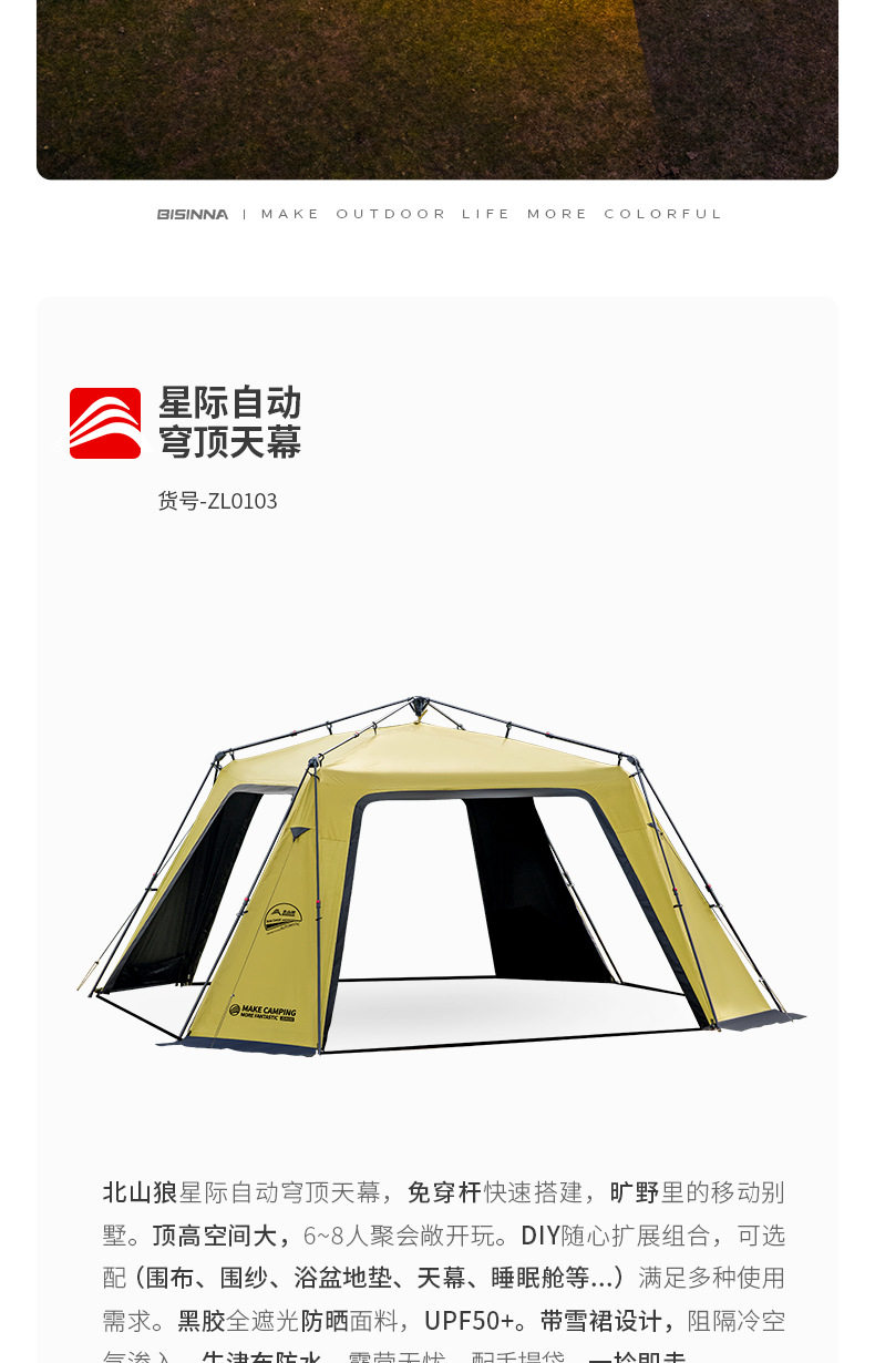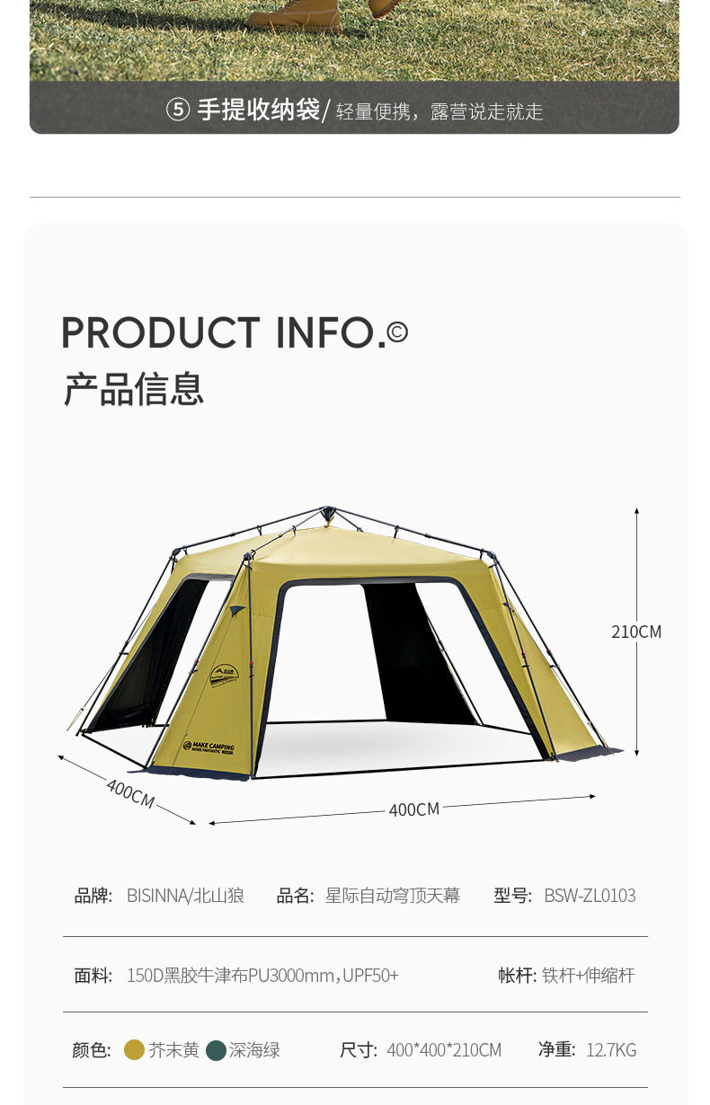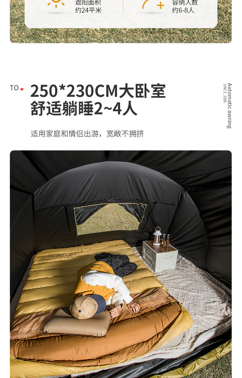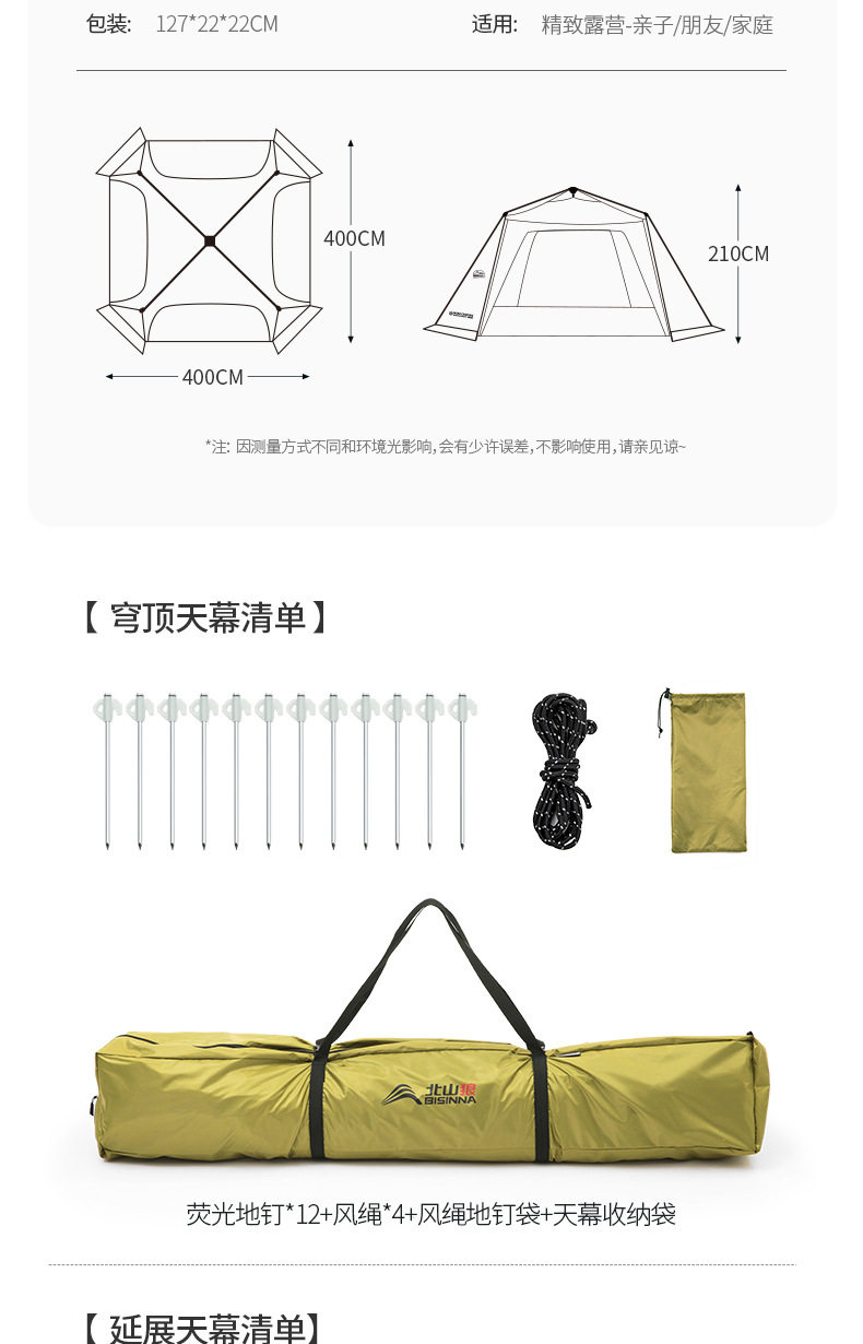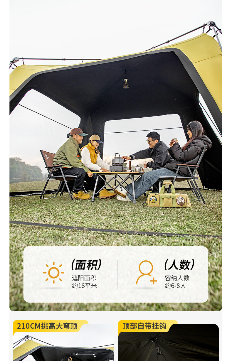 北山狼黑膠速開免搭建穹頂天幕帳篷戶外露營裝備超大空間防曬遮陽