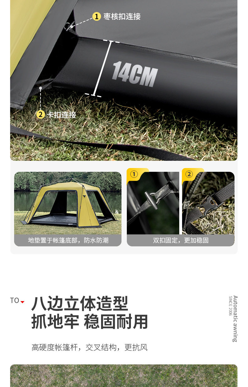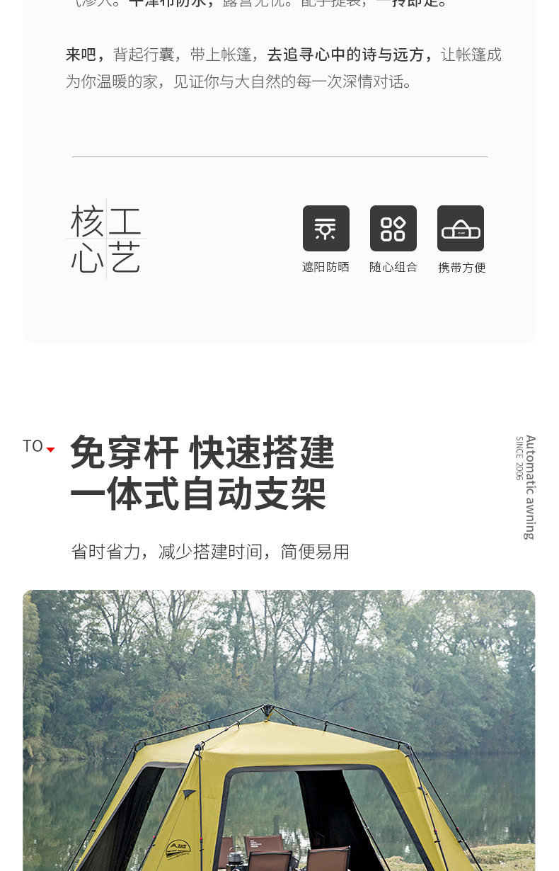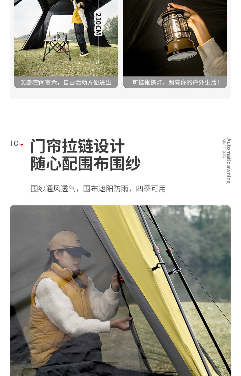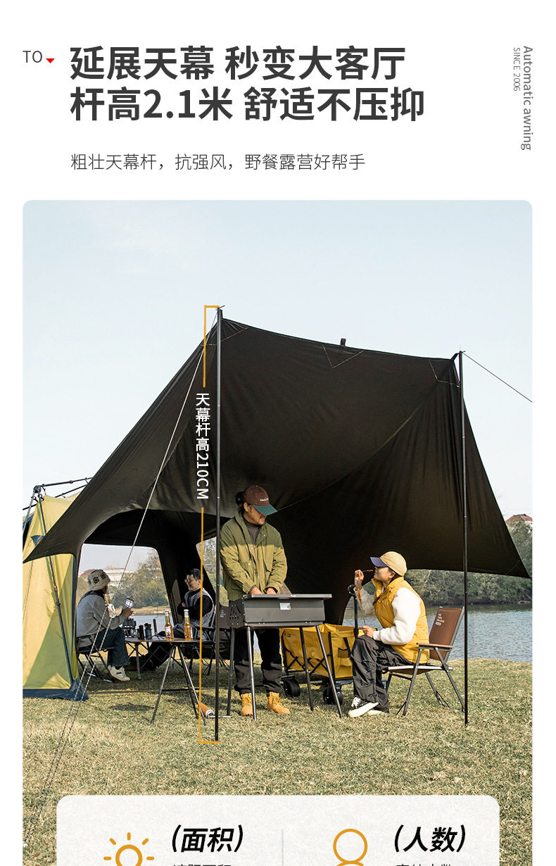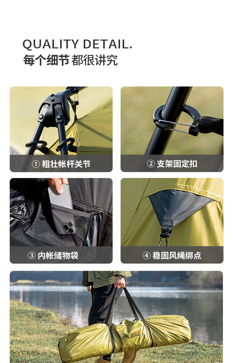 北山狼黑膠速開免搭建穹頂天幕帳篷戶外露營裝備超大空間防曬遮陽
