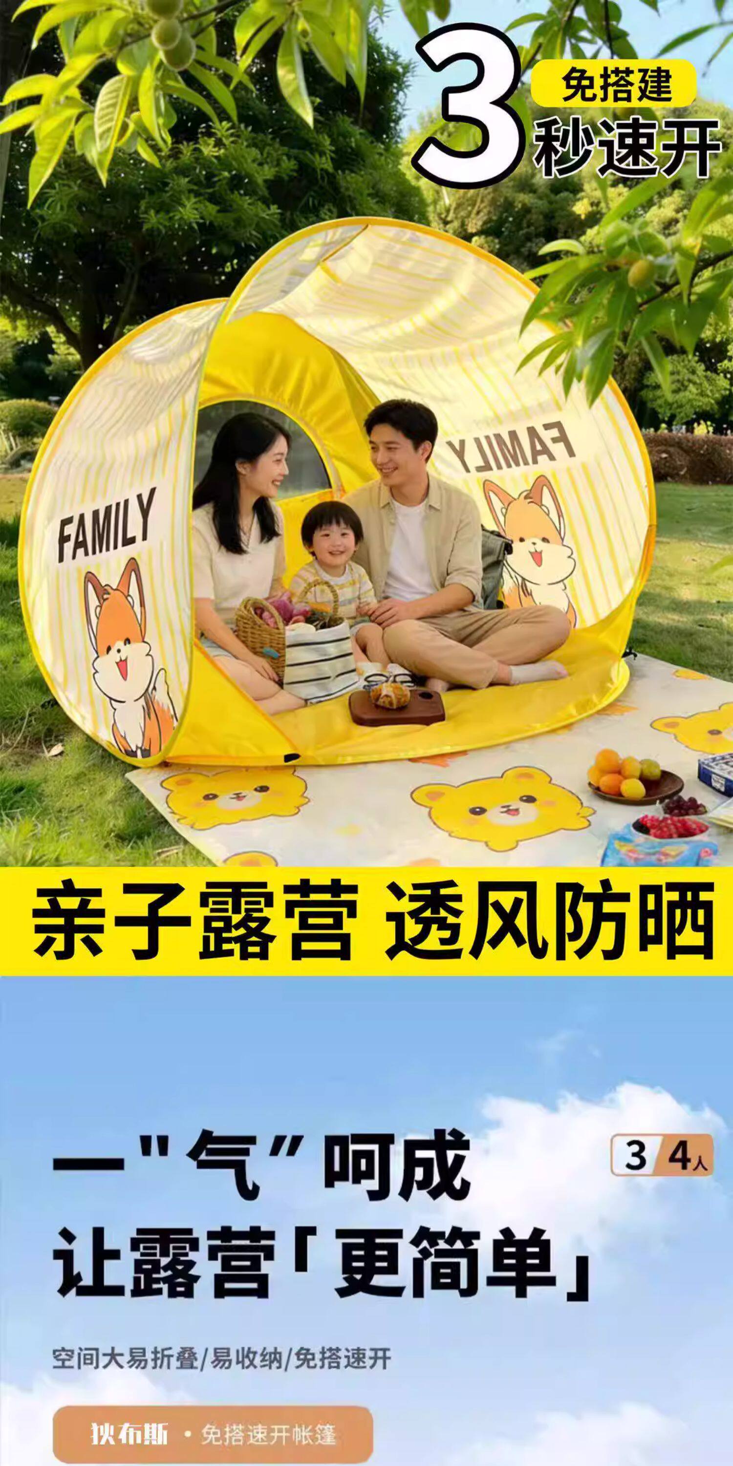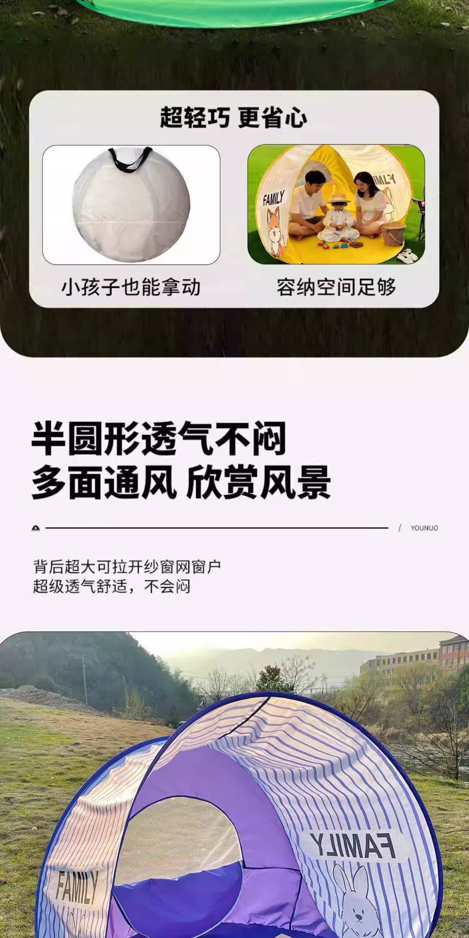 戶外露營帳篷一鍵開合免搭建兒童沙灘帳篷野餐折疊可攜式全自動速開