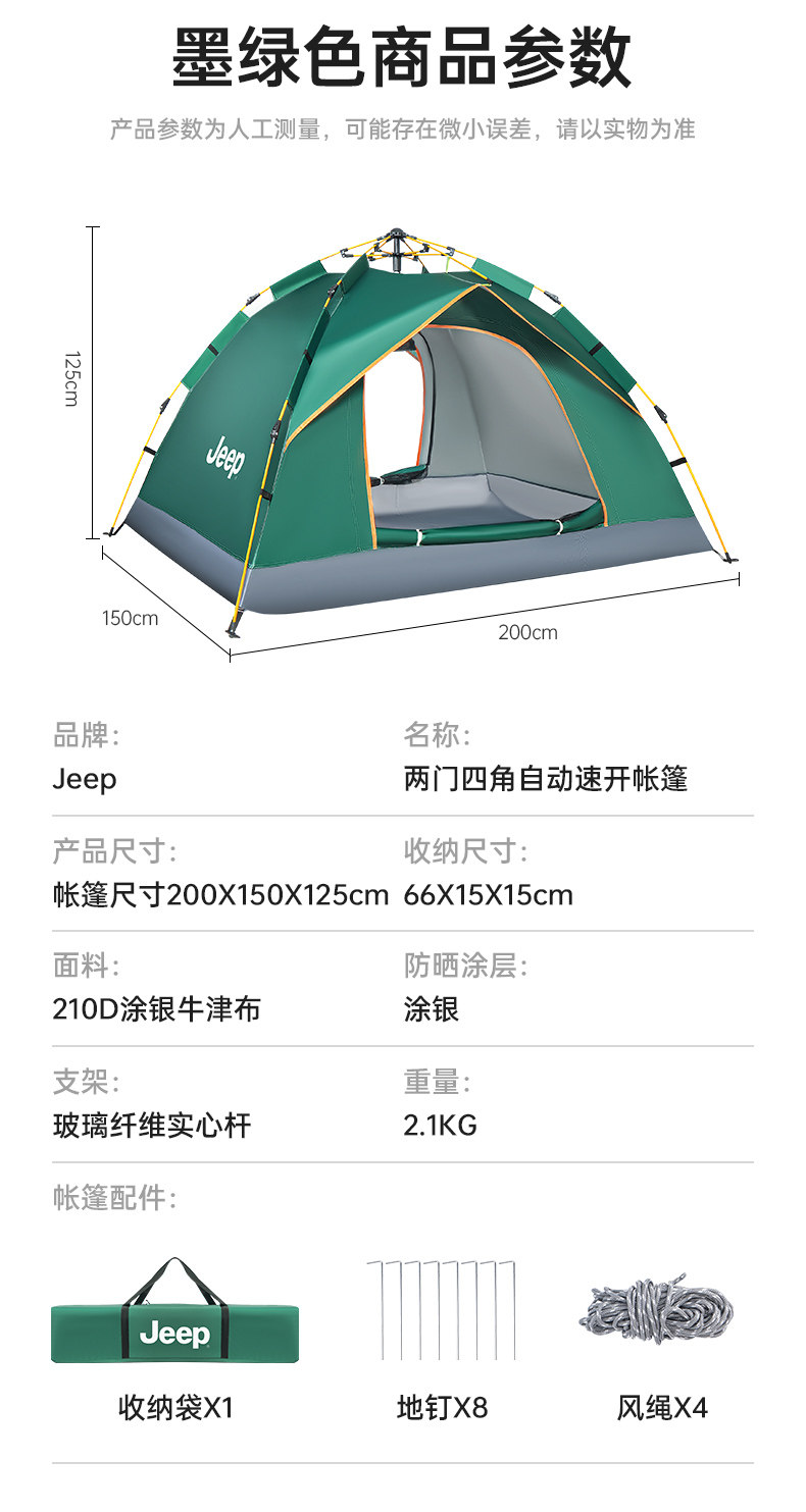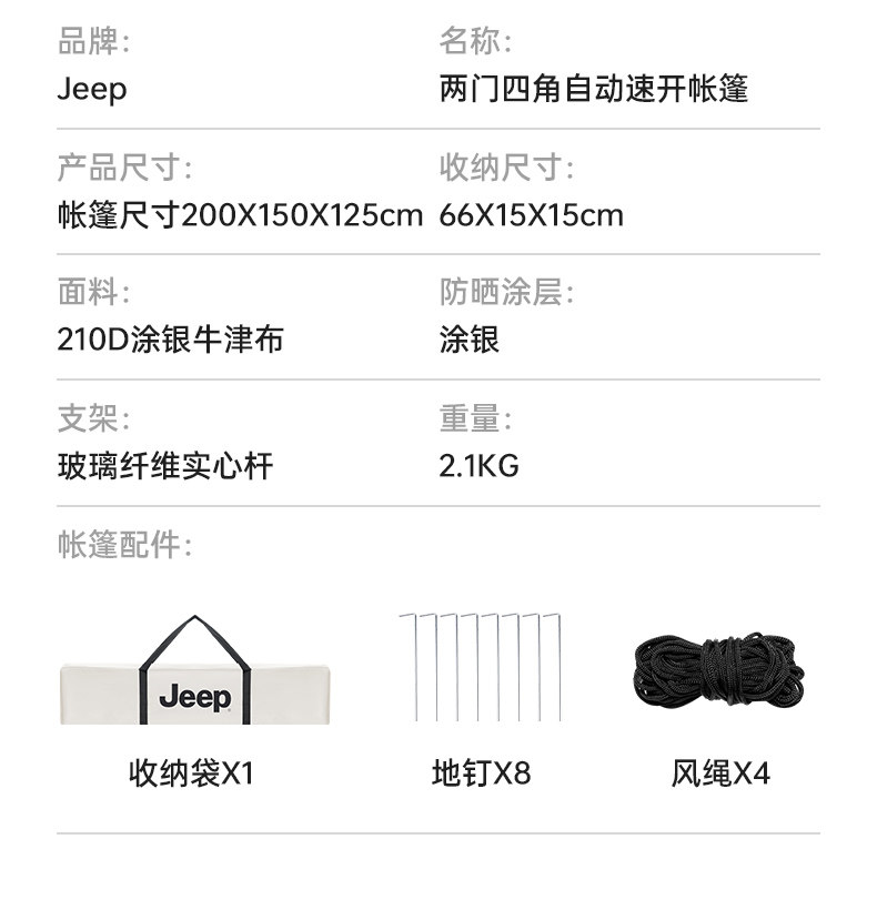JEEP帳篷戶外露營用品裝備免搭建速開可攜式折疊野營野外防風雨帳篷
