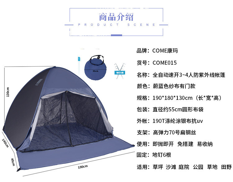 帳篷戶外3-4人 野外野餐公園沙灘帳篷塗銀防曬紫外線速開免搭建棚