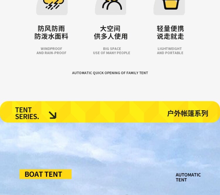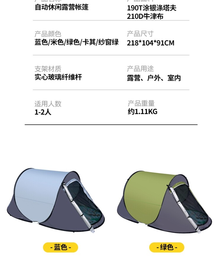 戶外露營全自動野外速開室內船型帳篷防風防曬塗層加厚野營手拋帳