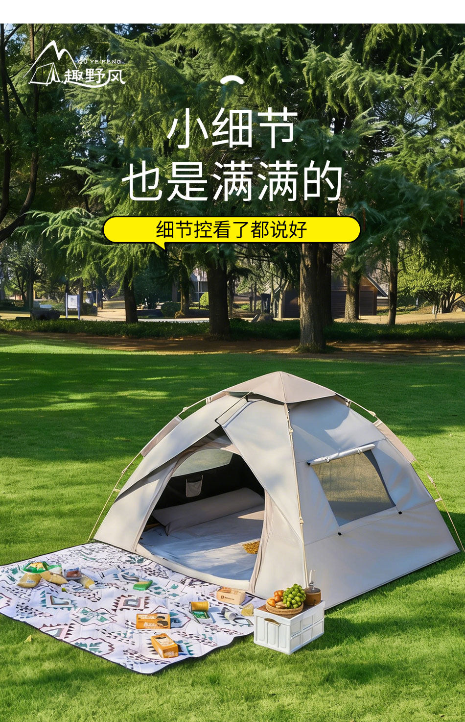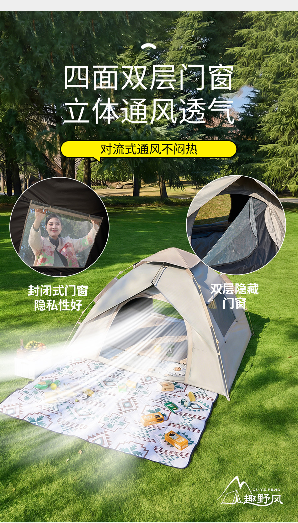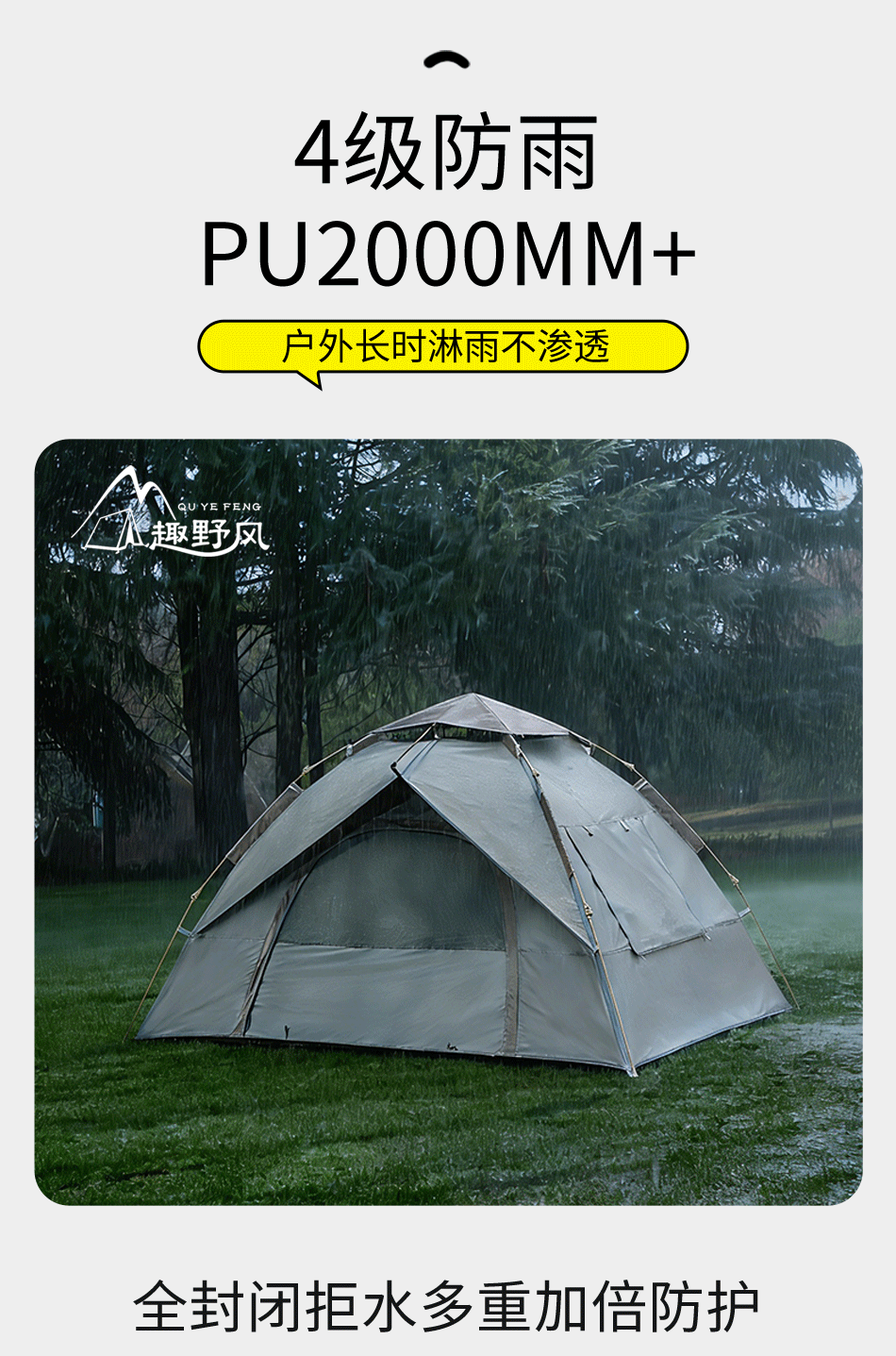 趣野風自動帳篷戶外露營防雨黑膠免搭速開野營全套裝備可攜式折疊