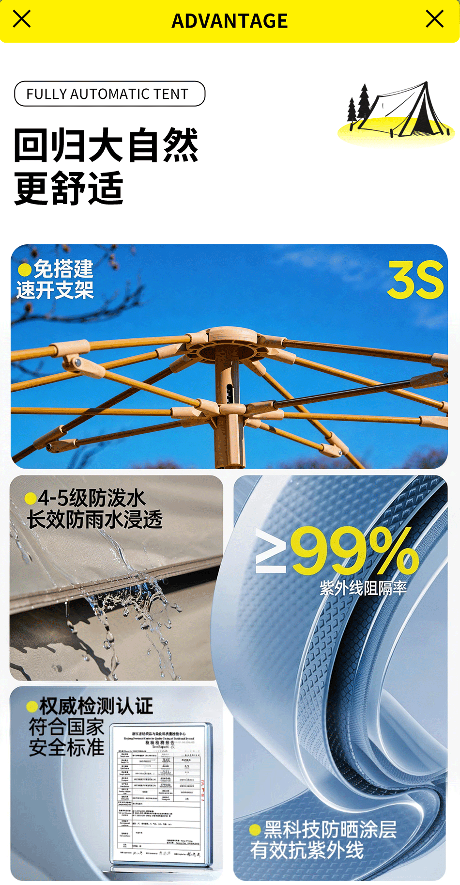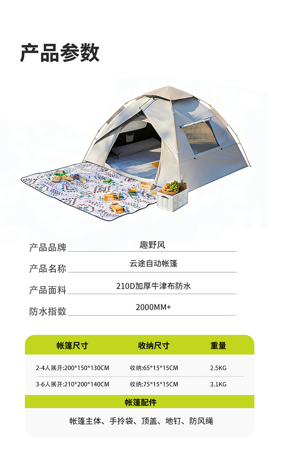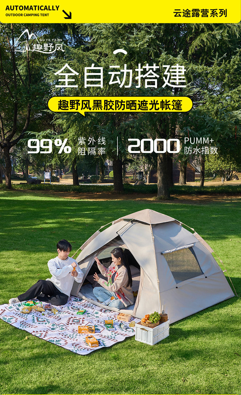 趣野風自動帳篷戶外露營防雨黑膠免搭速開野營全套裝備可攜式折疊
