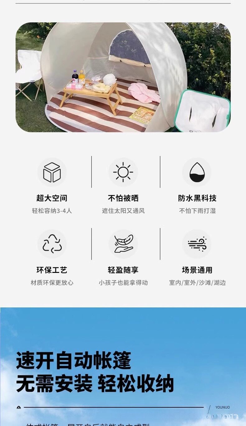 帳篷戶外可攜式折疊ins可攜式兒童露營一秒速開超大空間遮陽沙灘