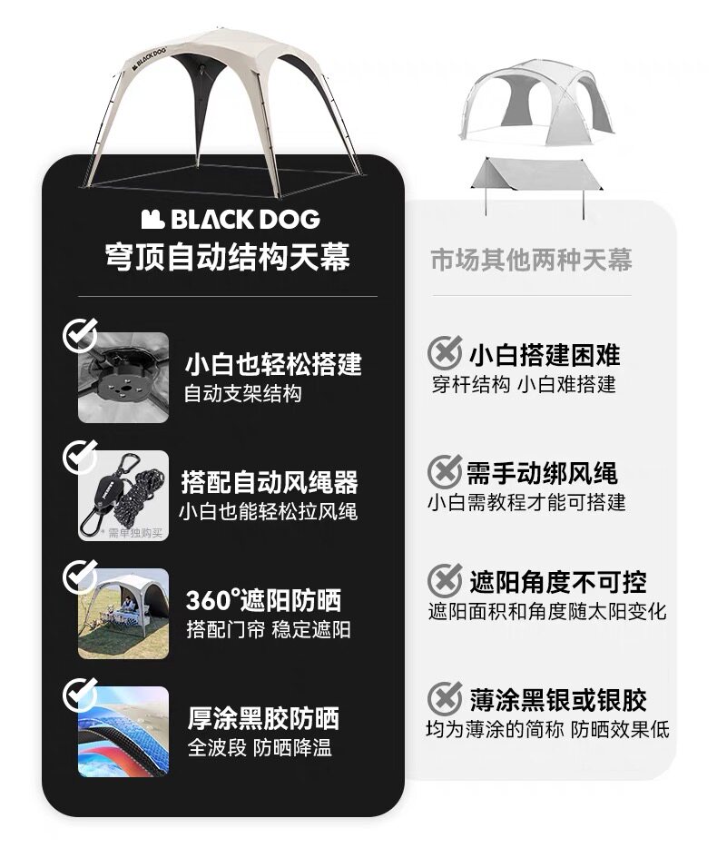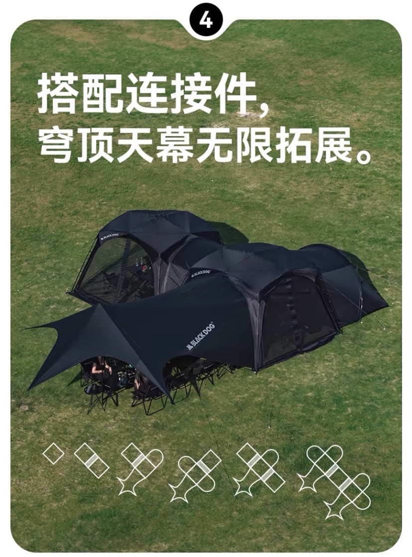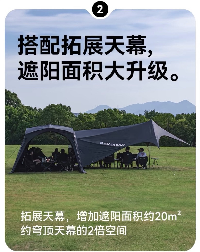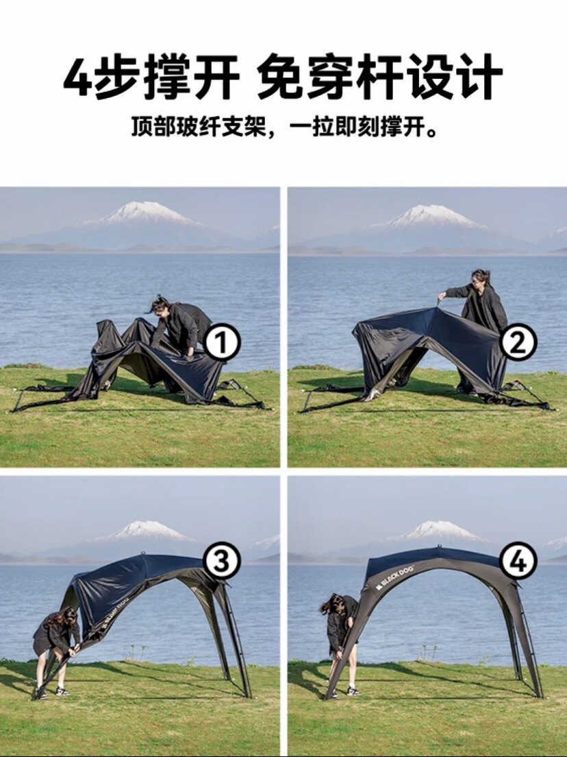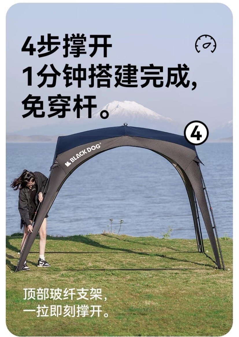BLACKDOG黑狗自動穹頂天幕速開戶外露營自立免搭建黑膠帳篷遮陽棚