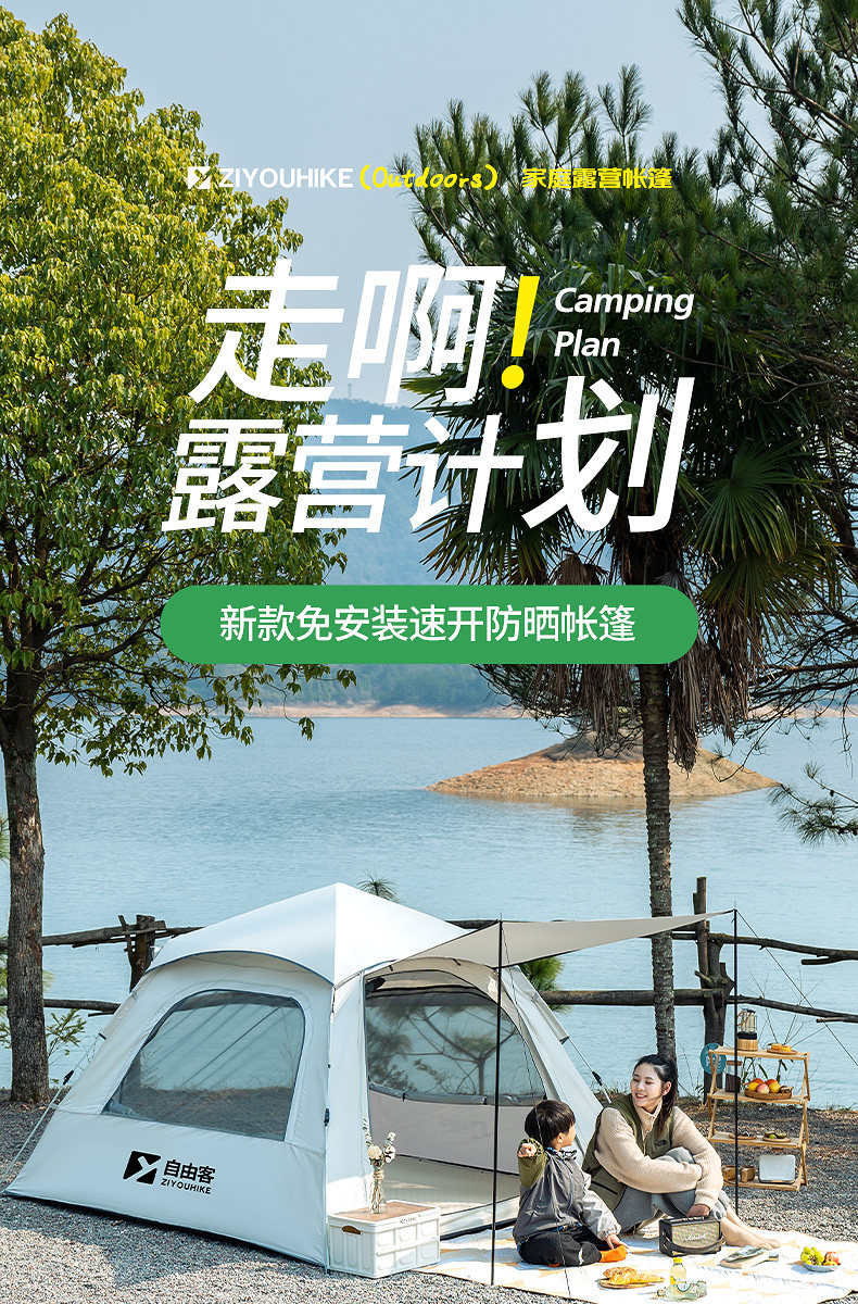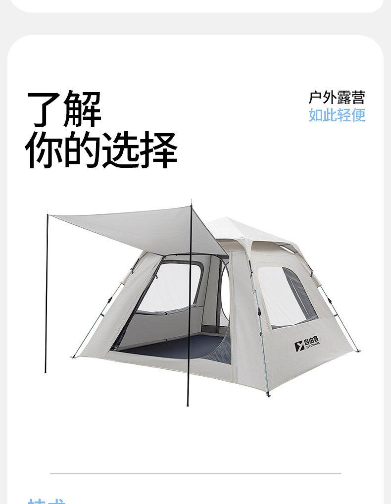 自由客戶外露營帳篷加厚防曬野營過夜防雨全自動速開露營全套裝備