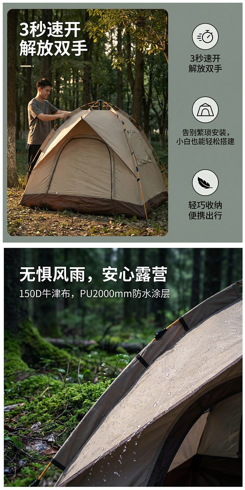 帳篷戶外 折疊可攜式 公園露營裝備 野營防曬遮光全自動速開帳篷