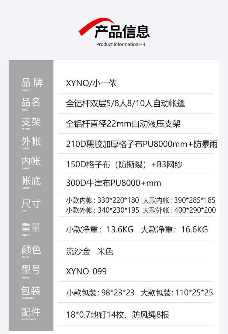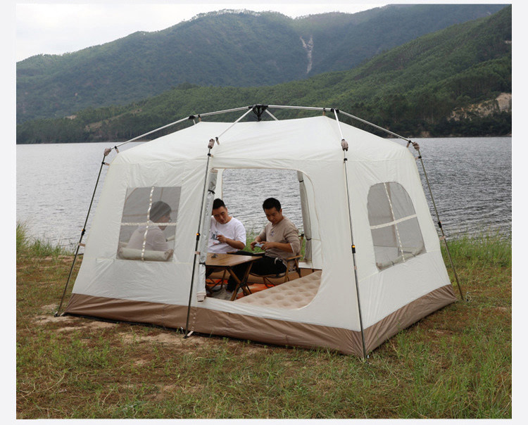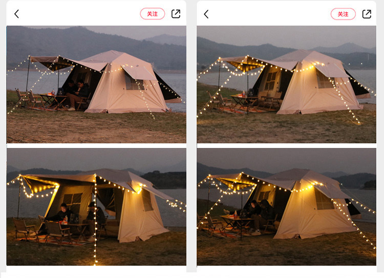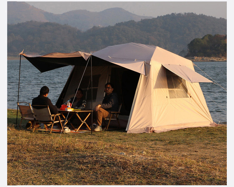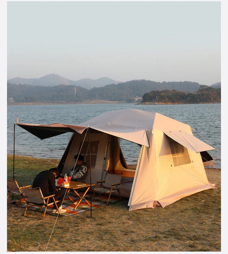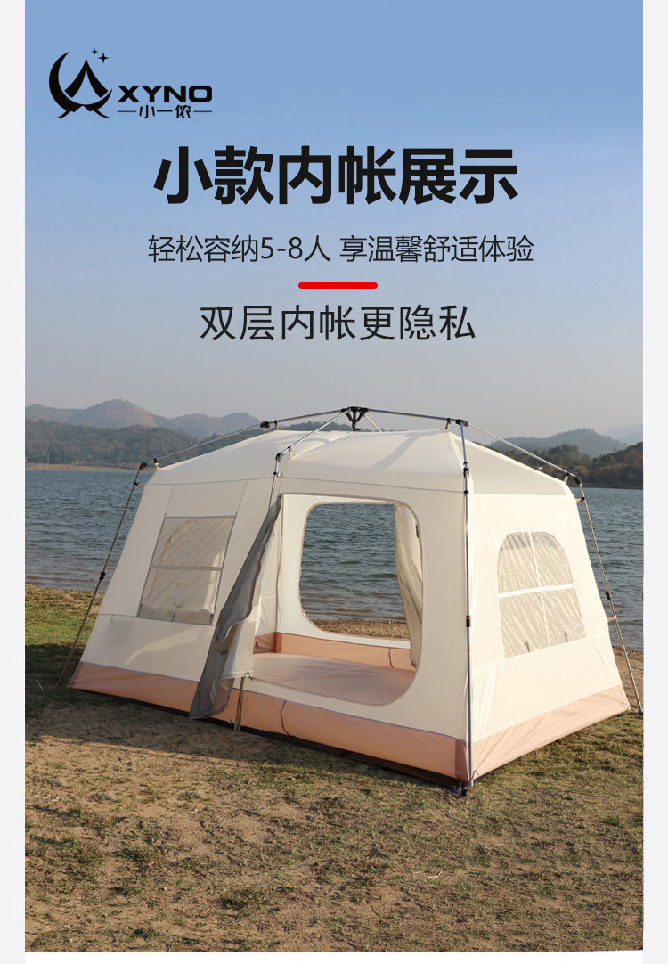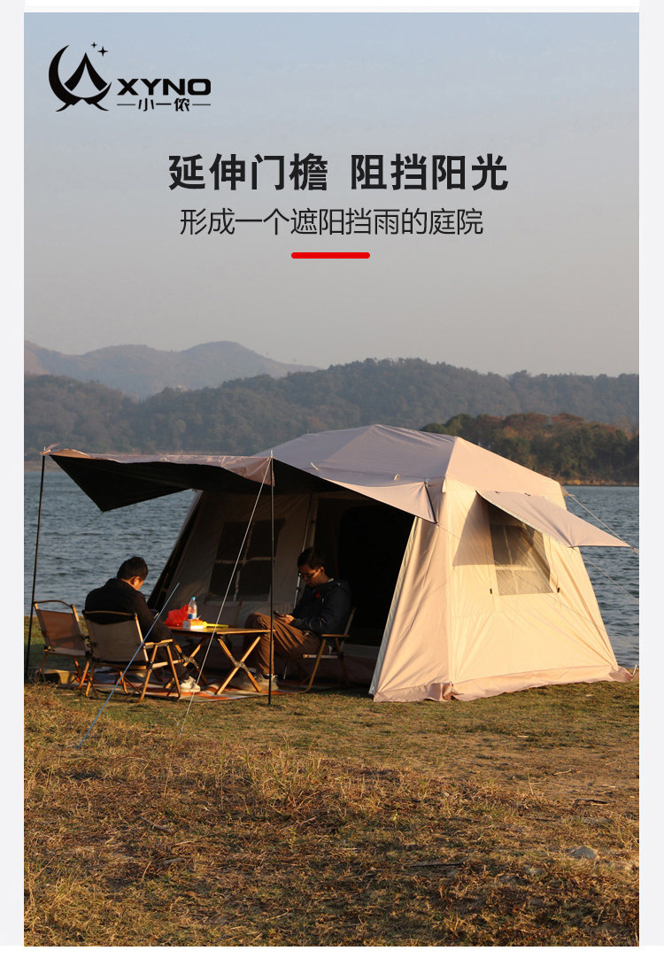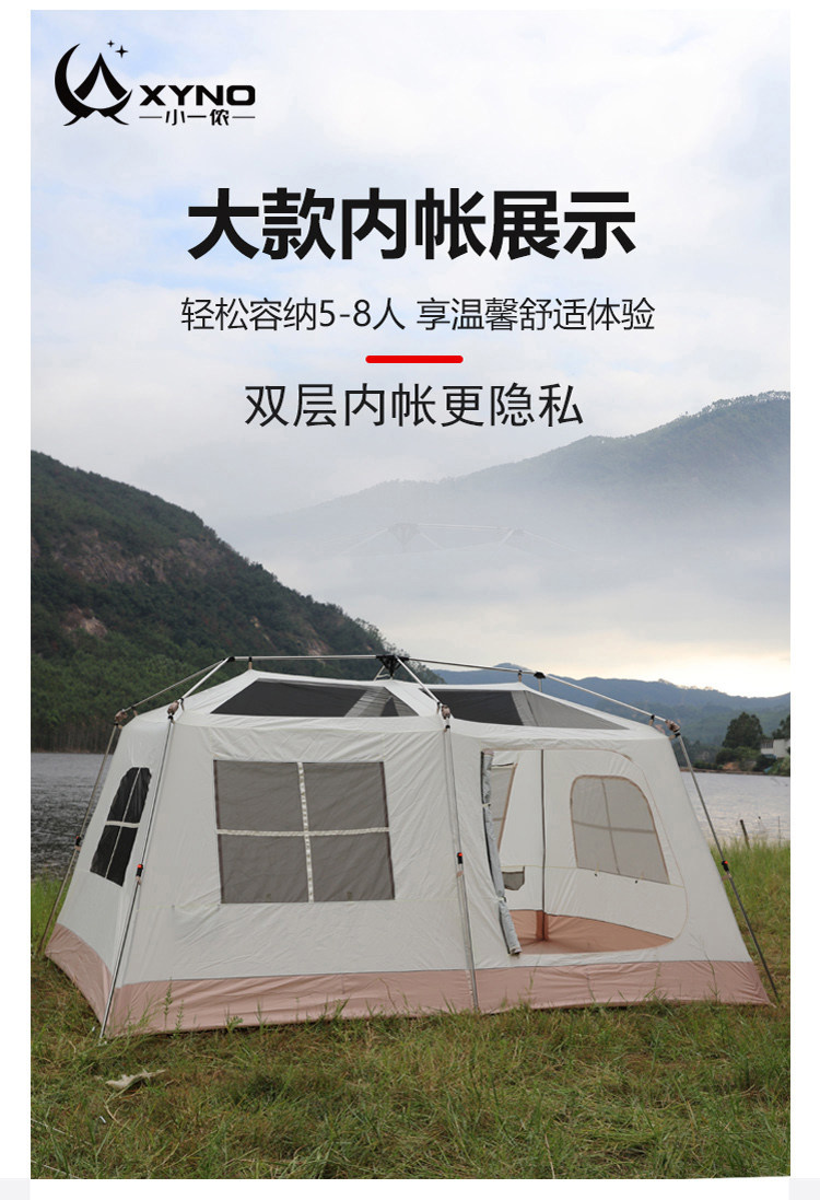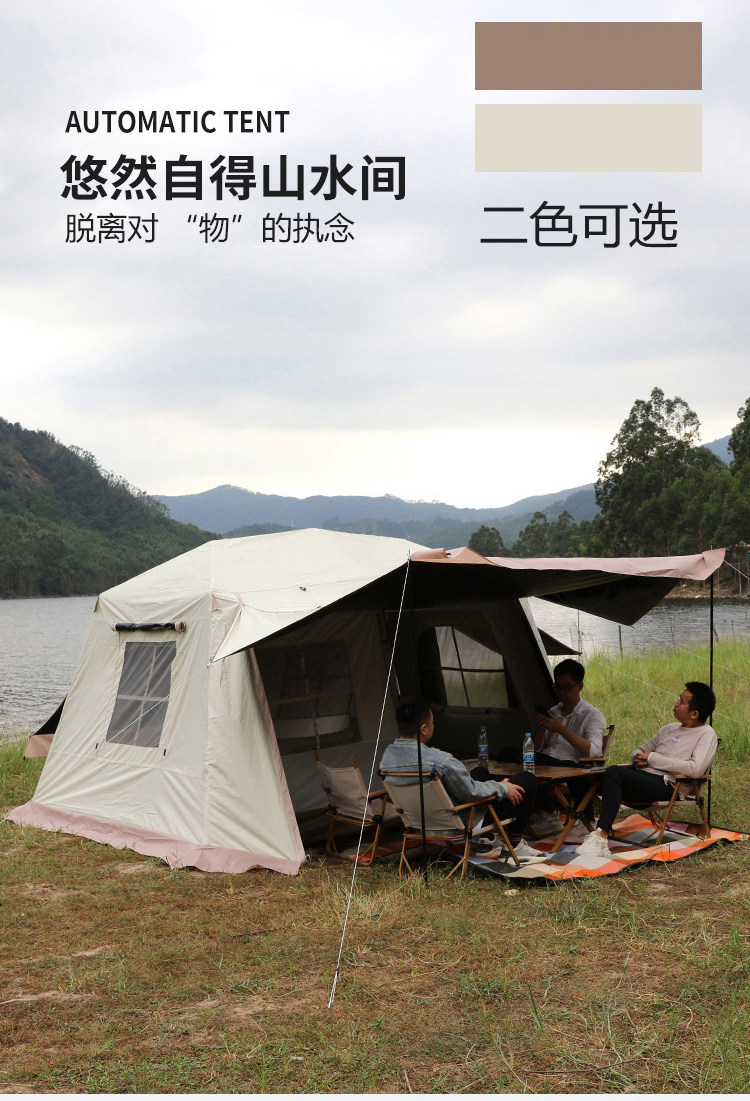 小一儂戶外全自動鋁桿加厚黑膠精緻防雨防曬速開野營二室屋脊帳篷