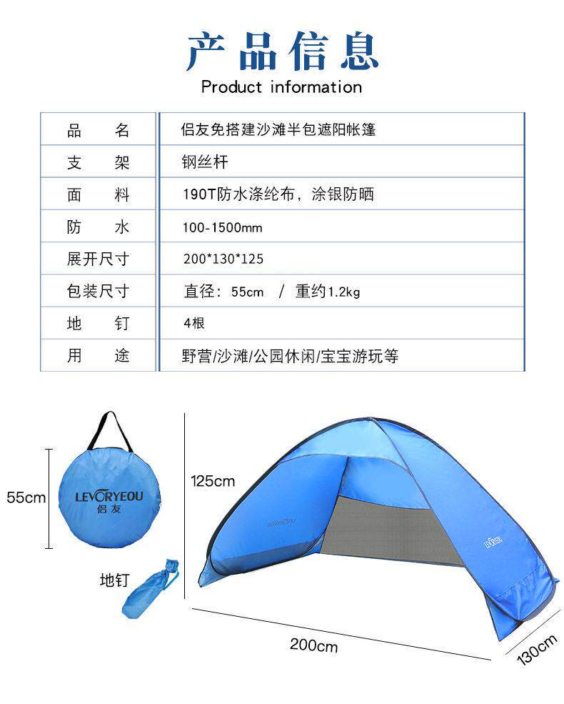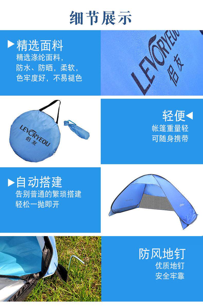 海邊沙灘兒童速開帳篷戶外折疊可攜式女遮陽防曬防水簡易速開公園