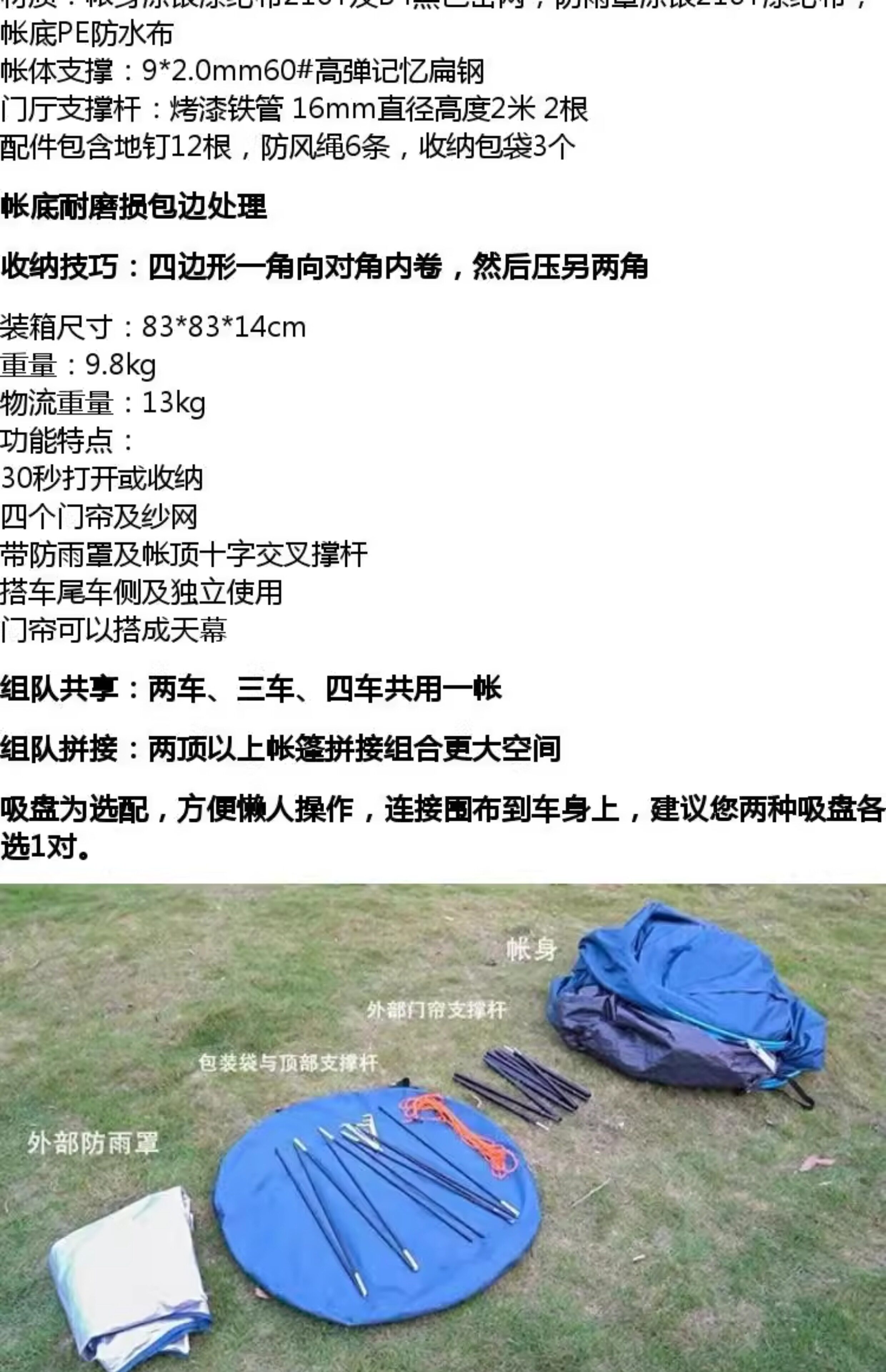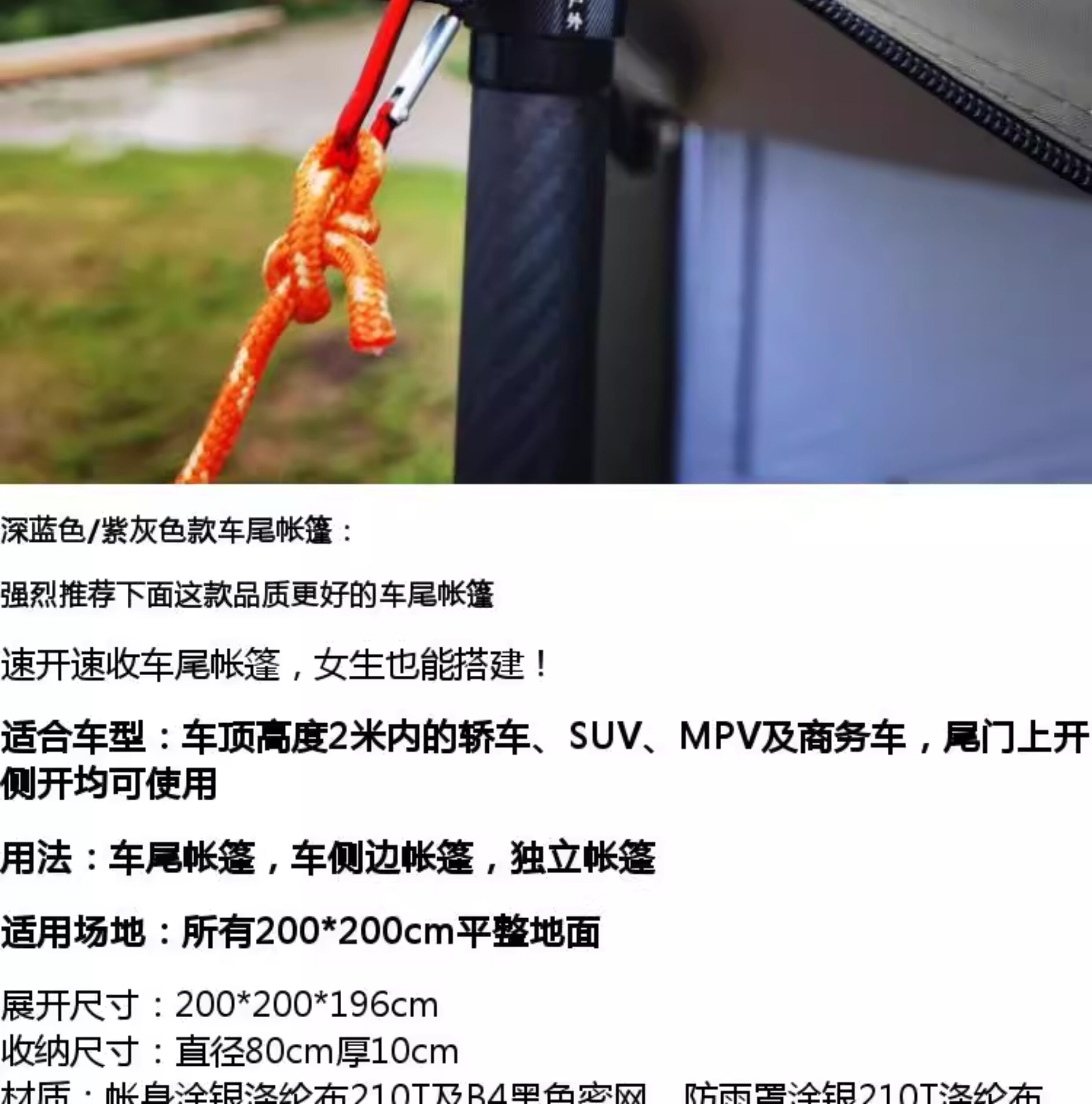 戶外露營SUV車尾帳篷自動免搭建速開速收遮陽天幕防曬雨防蚊