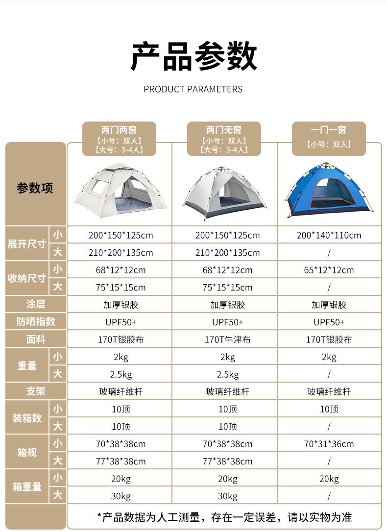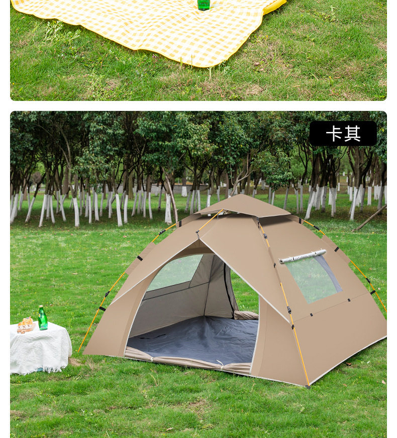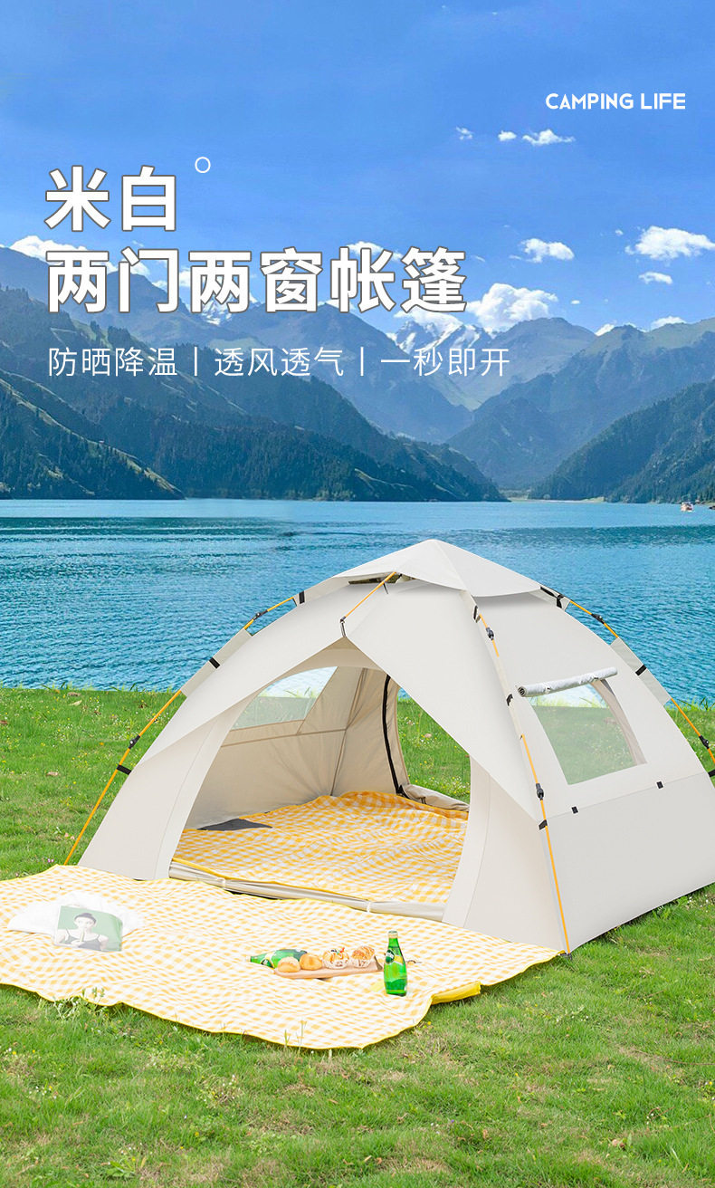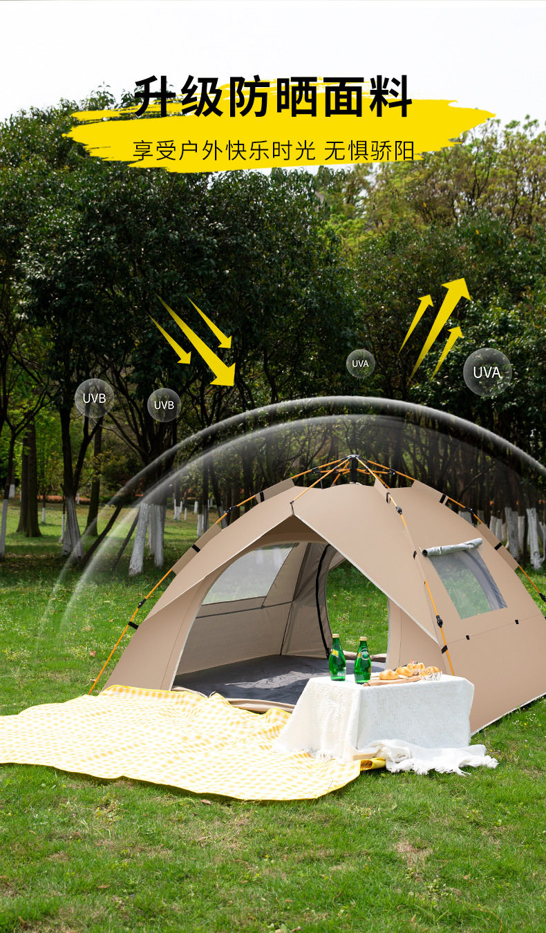 戶外可攜式露營帳篷3-4人野營自動折曡速開防雨防潮雙人四季帳
