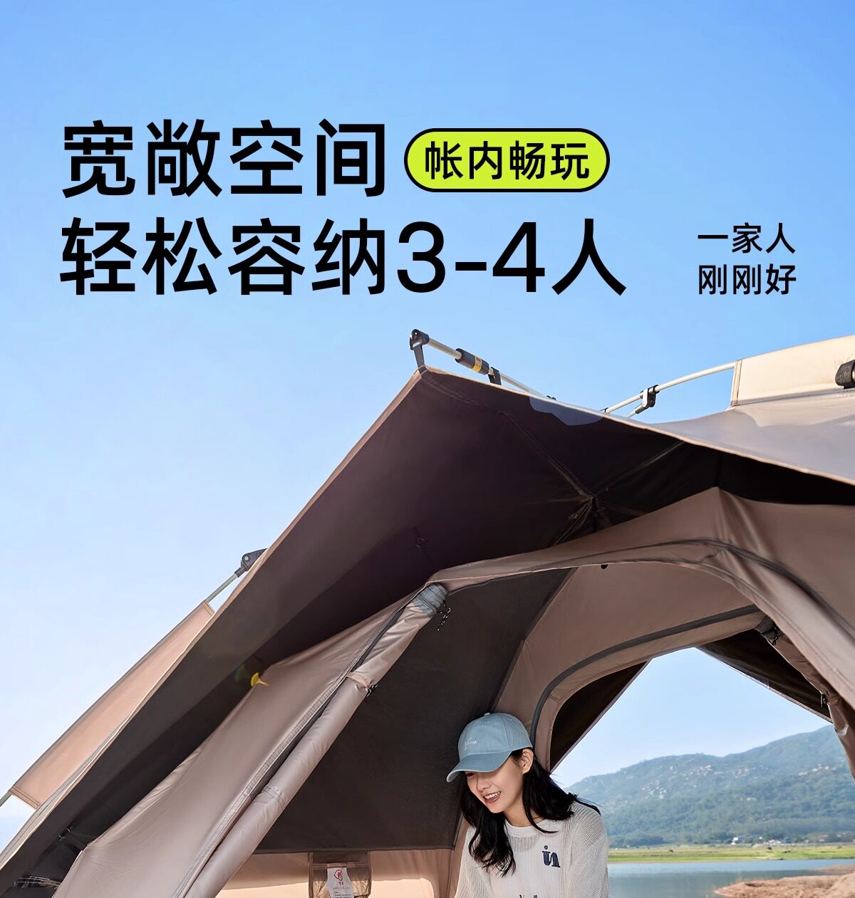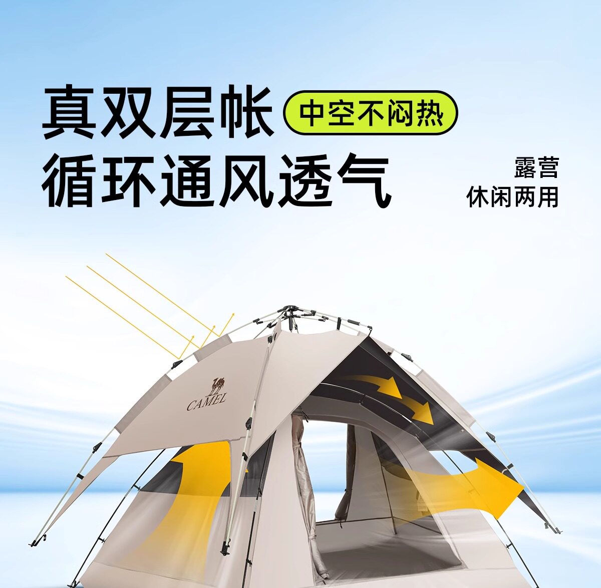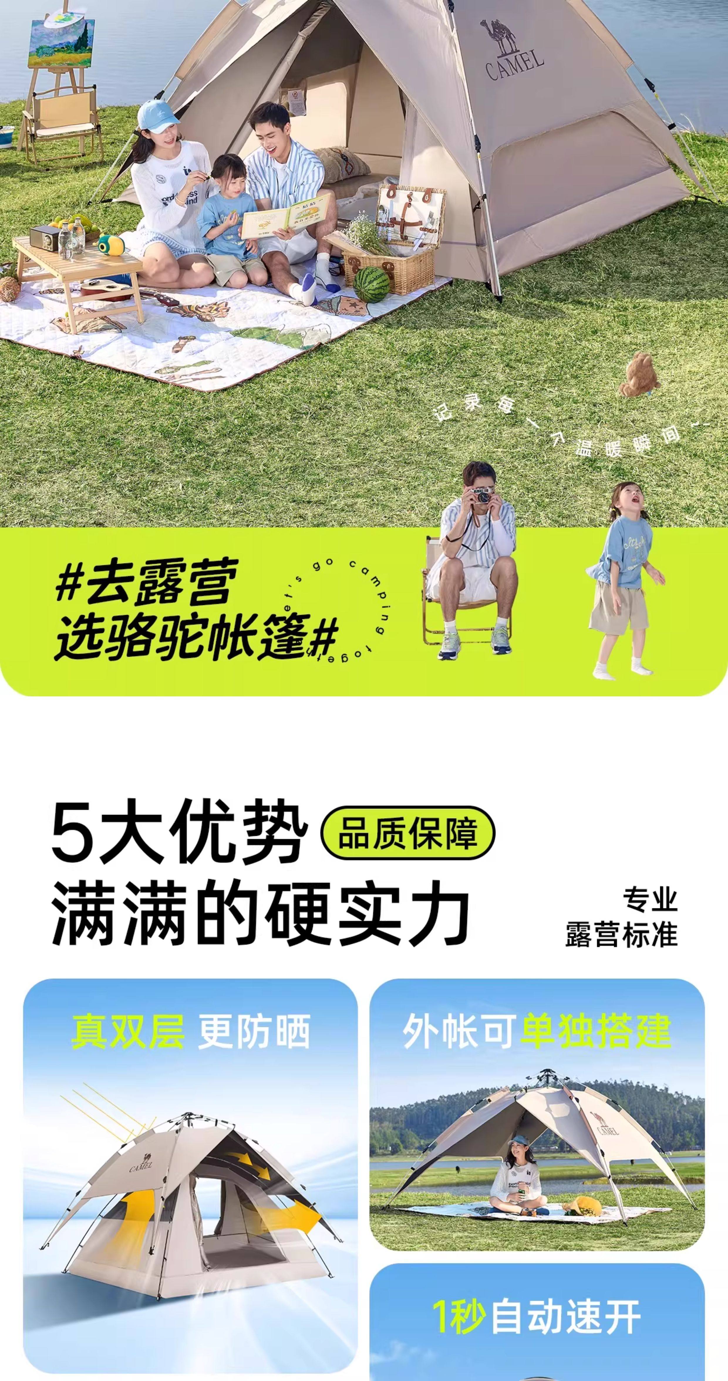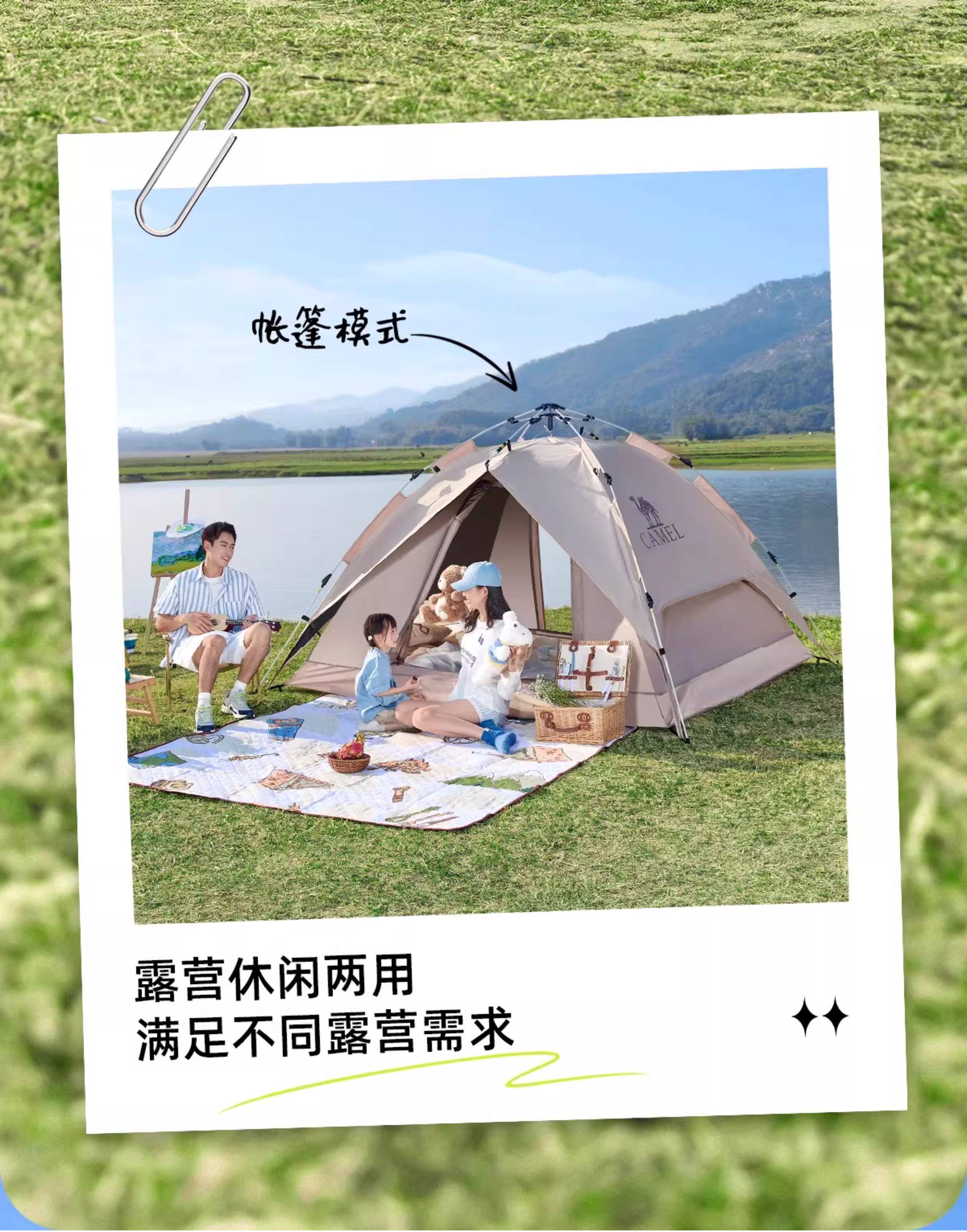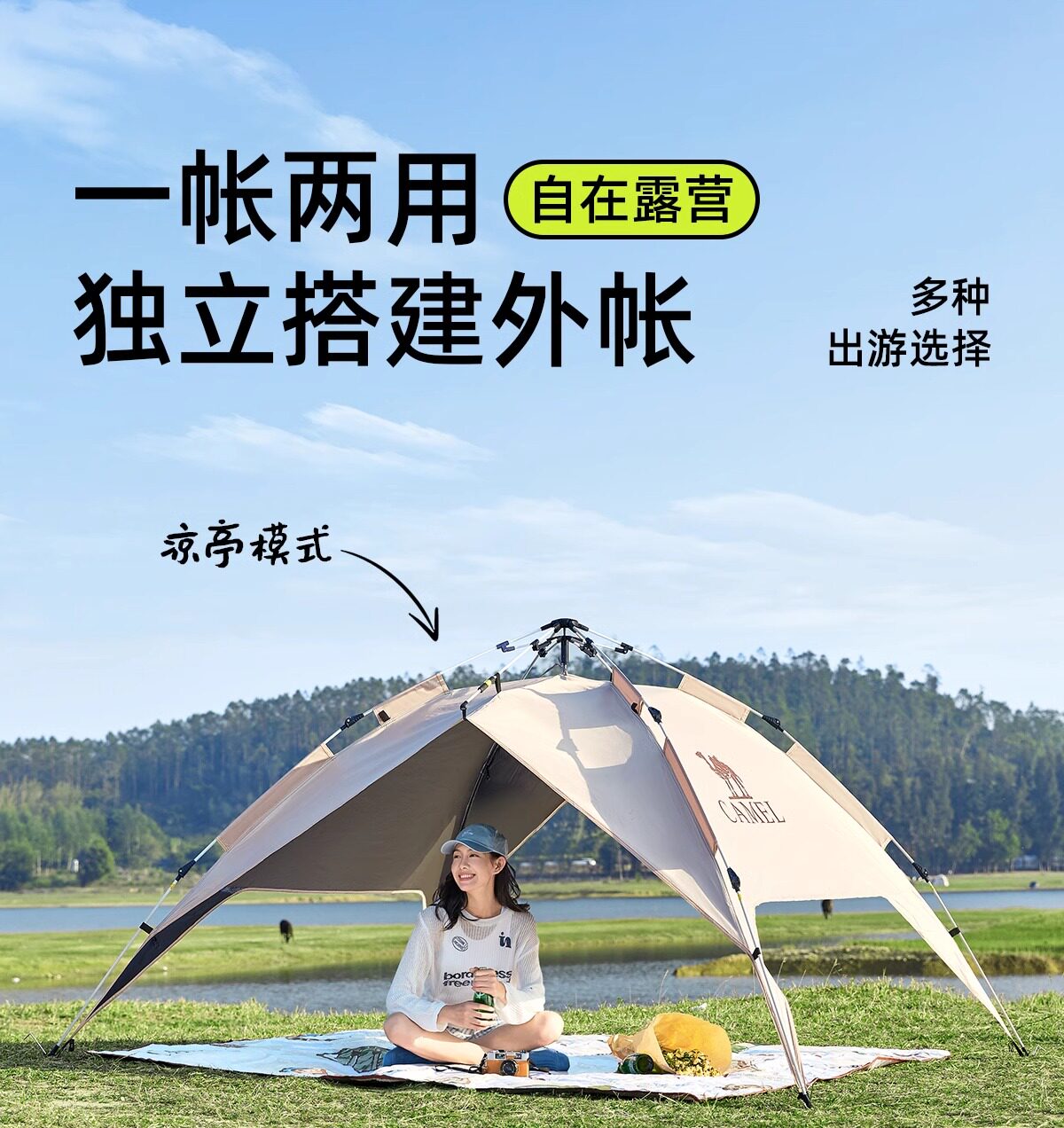 駱駝黑膠防曬帳篷全自動速開可攜式公園野餐戶外過夜防雨露營裝備